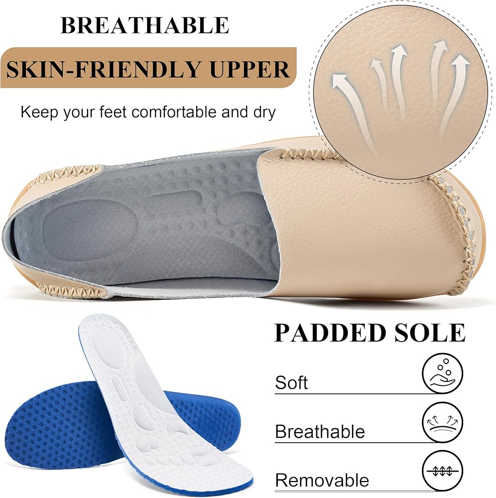 [Classic Design]- Womens loafers are simple and stylish, offering versatility and modern appeal. The round toe design allows for more room and fits a variety of foot shapes.