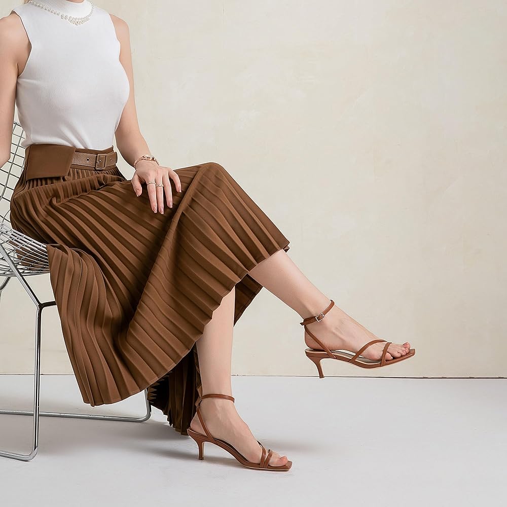 【Kitten Heel Sandals】: These women's kitten heel sandals feature a thin straps design and open square toe that showcases the perfect fashion style.