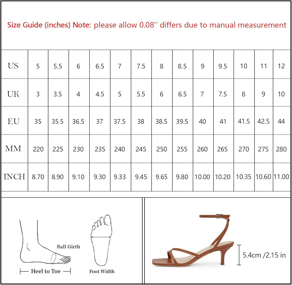 【Comfort Kitten Heels】: The heel height is about 2.15 in/5.5cm. The strappy heels feature a soft and cushioned insole for all day walking comfort.