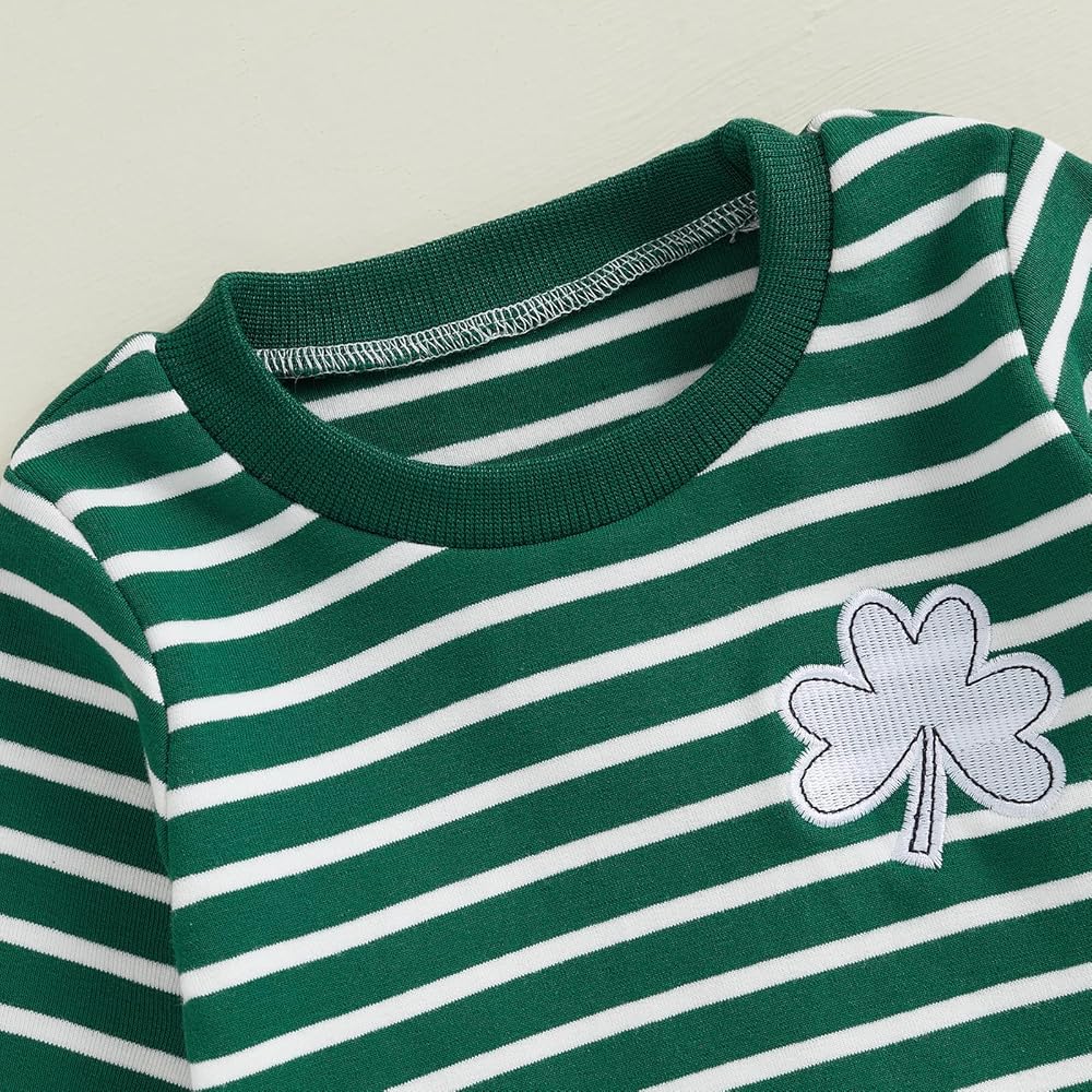 Karuedoo Infant Toddler Baby Boy Girl St Patricks Day Outfit Clover Embroidery Stripe Long Sleeve Sweatshirt and Pants Set