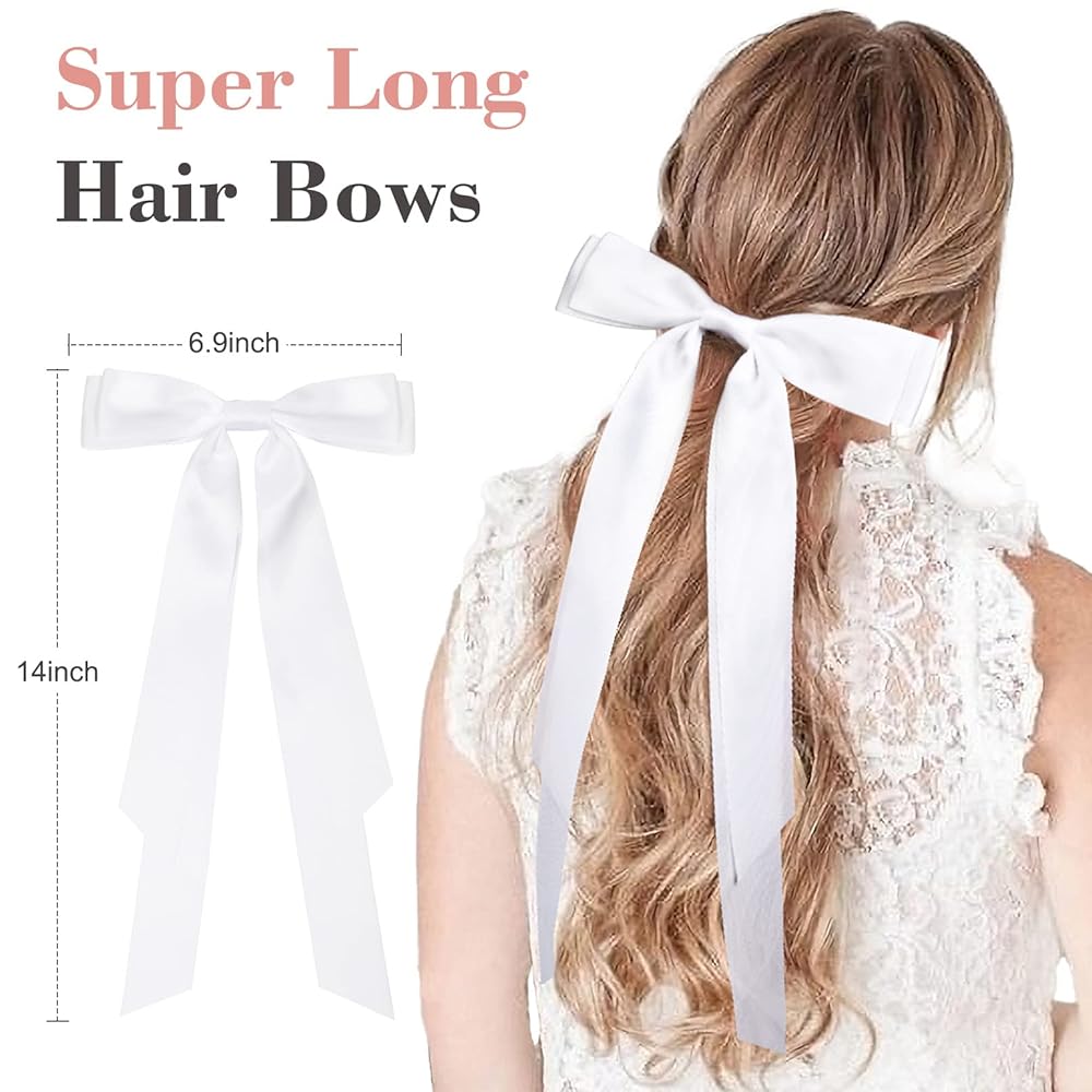 Size: Measuring at 7 by 14 inches, this bow is larger than the typical women hair bow, with long flowing tails that cascade down the back of the head, adding a touch of graceful movement.