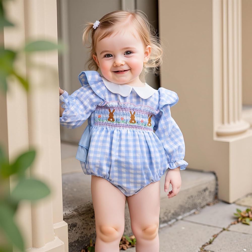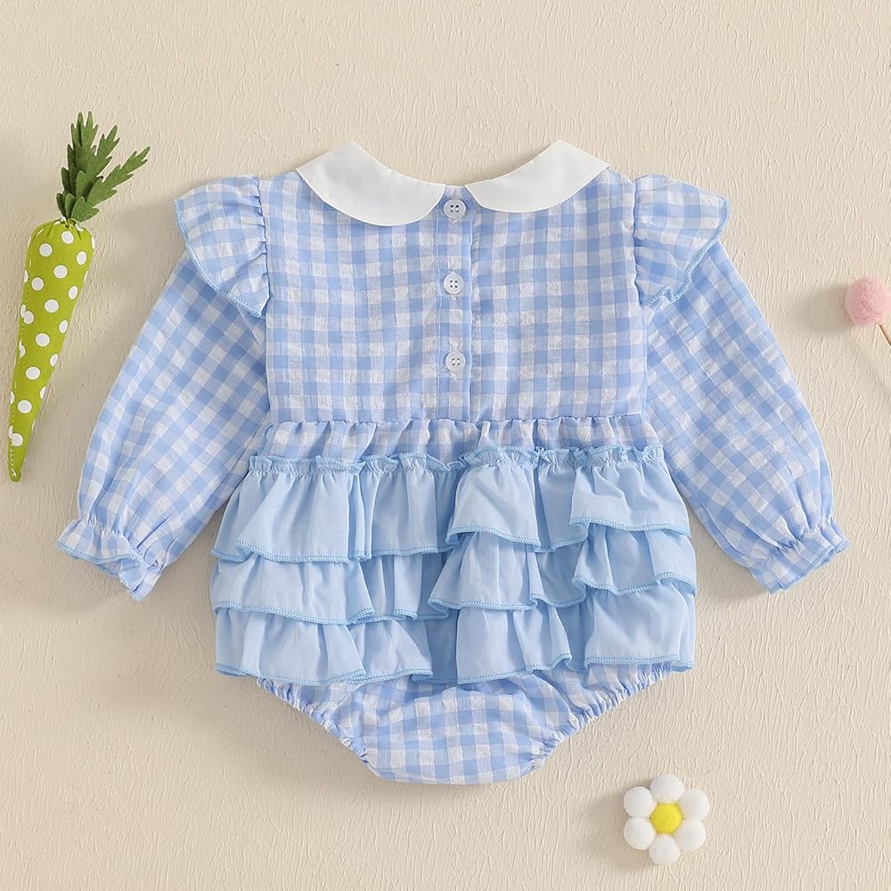 Package Includes: One * Baby girl plaid romper, suitbale for spring and fall; Perfect as a present for girls on Halloween, Christmas, Thanksgiving, Easter, New Year, birthdays, and more