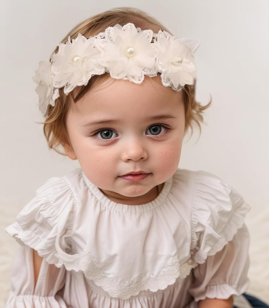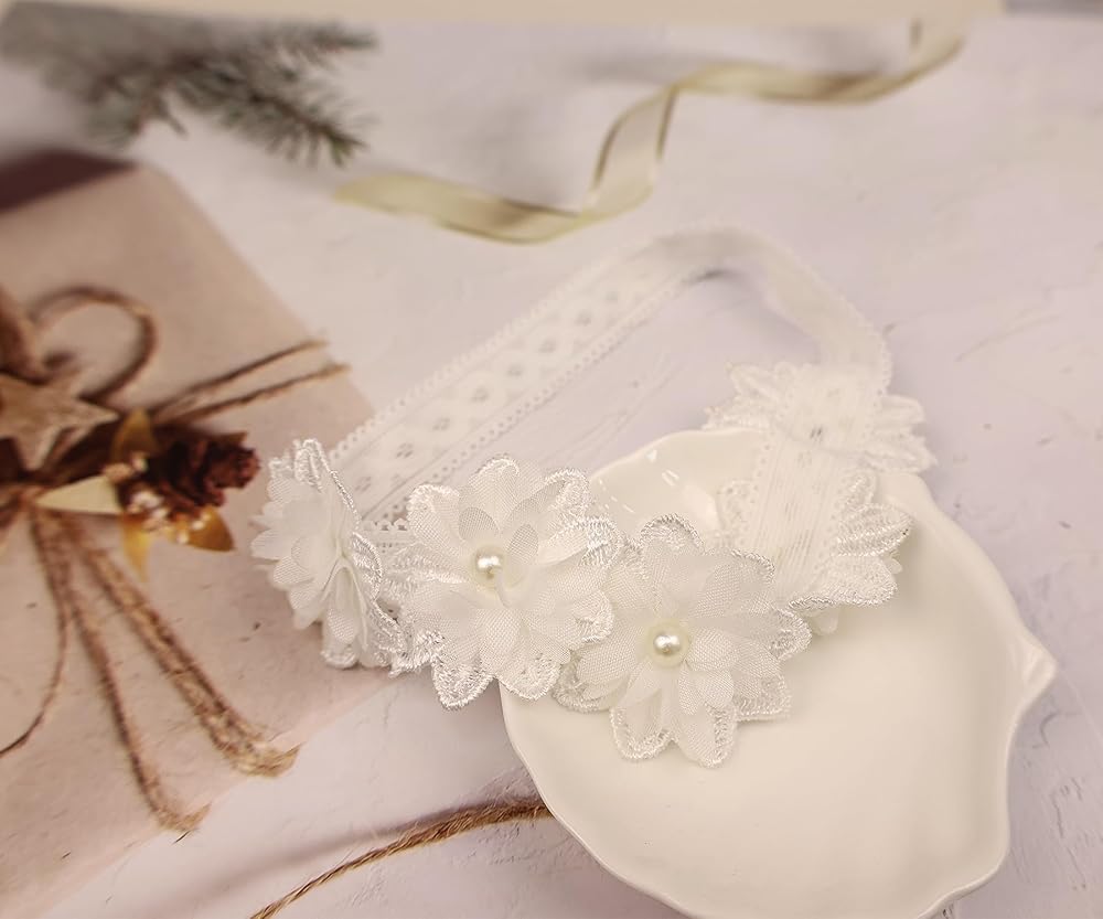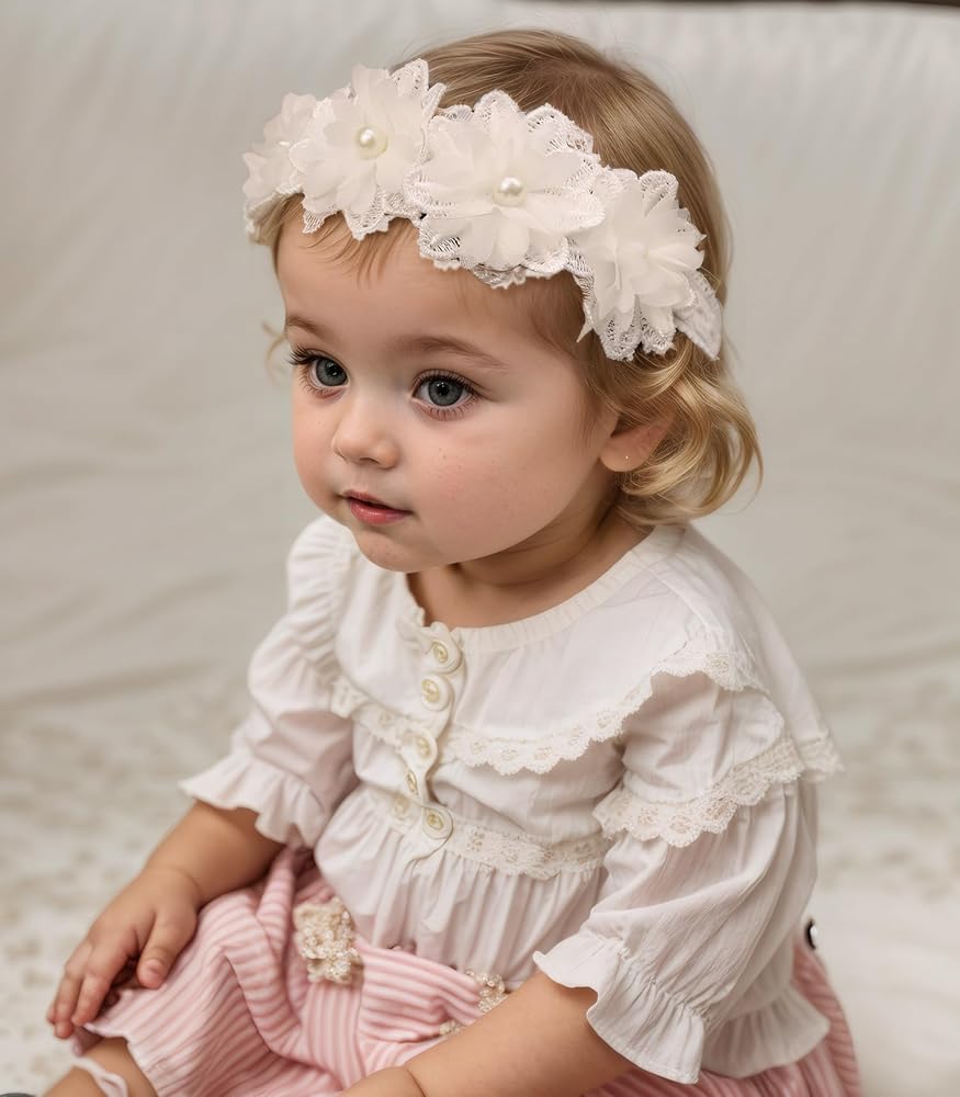 Elevate your little one's style with this adorable lace headband. Crafted from soft, stretchy fabric, it features an elegant lace design adorned with delicate, feminine flowers. Suitable for babies, infants, and toddlers aged 0-36 months, this headband offers a comfortable and secure fit while adding a touch of whimsy to any outfit. The elastic band gently hugs your child's head, ensuring it stays in place throughout playtime or special occasions. It is suitable for many occasions, such as weddings, parties, festivals, baby photography, daily wear, etc. It can accommodate a range of head sizes as your little one grows. Effortlessly elevate your baby's ensemble with this delightful hair accessory.