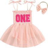 Baby Girl Birthday Outfit, Ladybug Letter Tie Shoulder Square Neck Romper Dress Bow Headband 2 Pcs Set