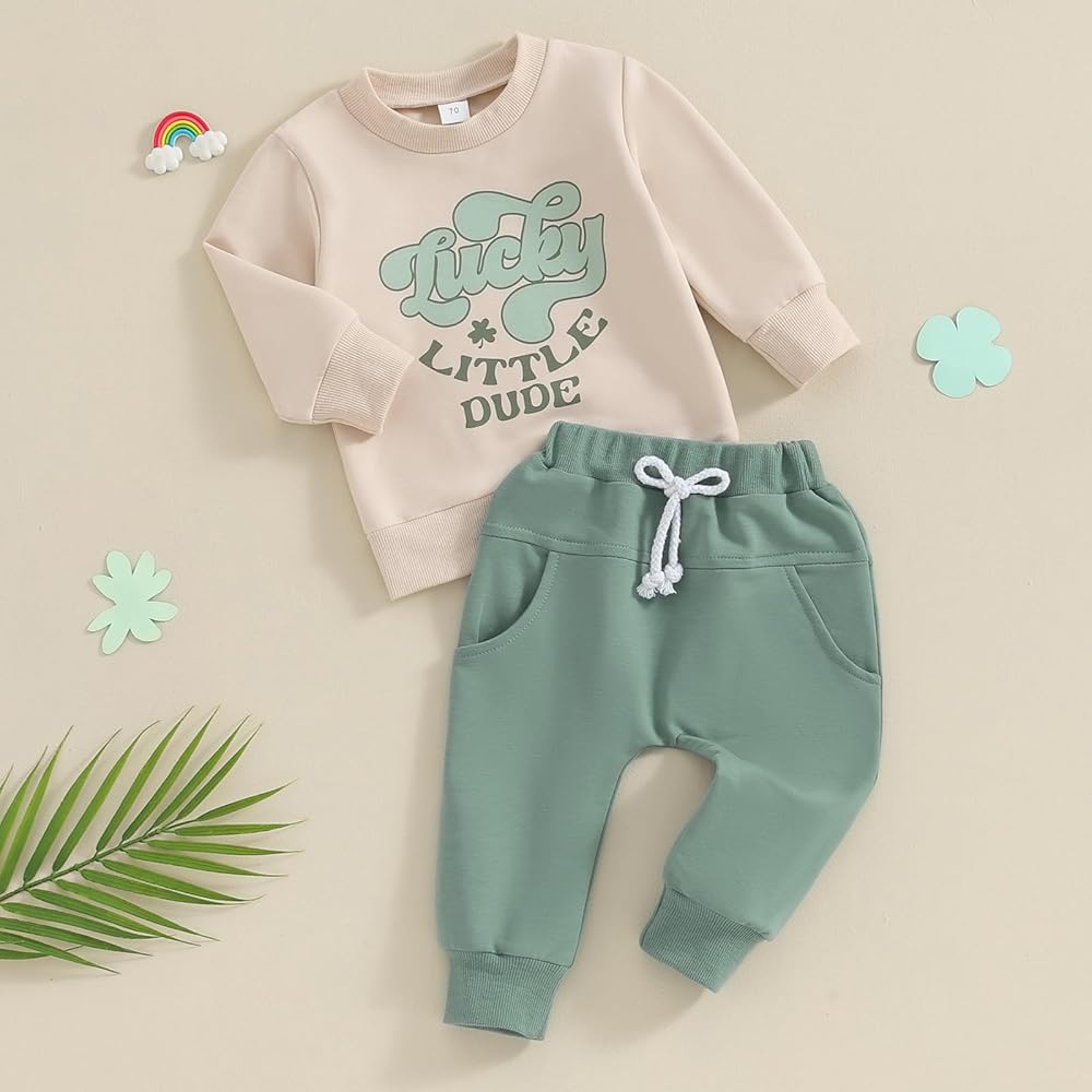 Baby Boy Irish 2 Piece Outfits Letter Print Long Sleeve Sweatshirt and Elastic Pants for Toddler Fall Clothes