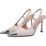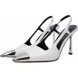 Design:the slingback pumps features square pointed metal cap toe,adding a luxurious touch to the classic leather design.Featuring a stiletto high heel, these pointed toe pumps add height and elongate your silhouette,slims down the shape of your legs.