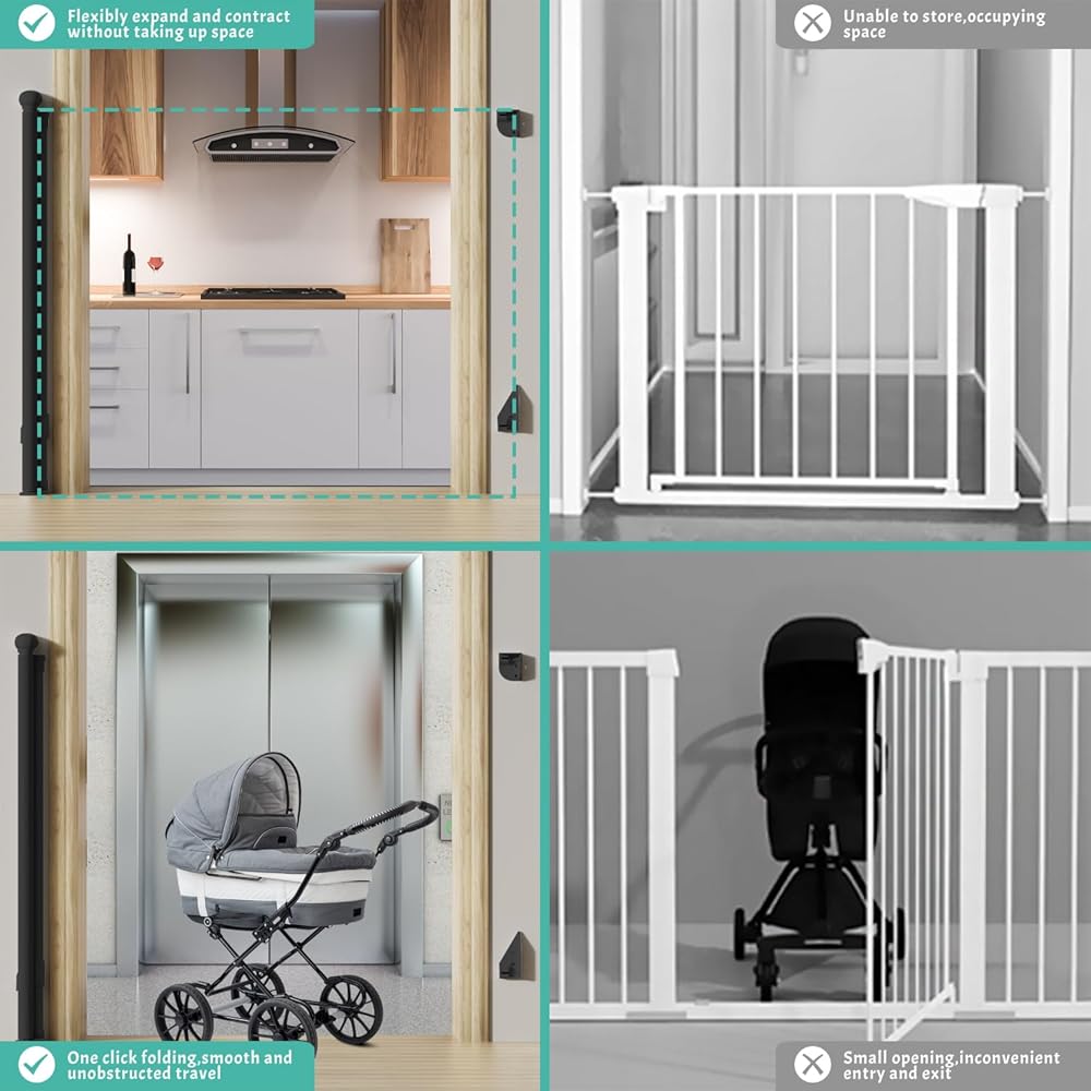 Versatile Placement: Use as an infant gate and a pet gate to keep mischief contained by providing a safe, closed off environment to play. An ideal safety solution for various spaces around your home, including the kitchen, bedroom, living room. Perfect for installation at the bottom of stairs, doorways, hallways, indoors and outdoors.
