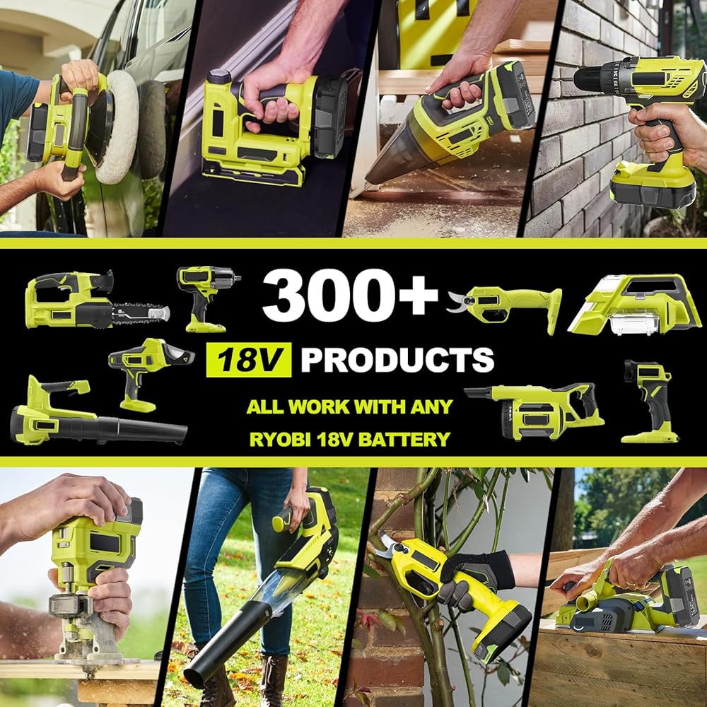 Wide Compatibility: 100% Compatible with Ryobi one+ 18V Multi Cordless Power Tools PCL430B, PCL206B, PCL515B, PCL525B, PCL500B, and Chargers PCG, P137, P135, P117 etc