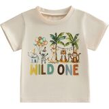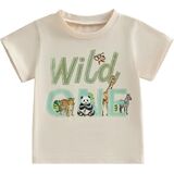 Infant Baby Boys First Birthday Outfit 1st Birthday T-shirt Wild One Safari Zoo Jungle Animals Shirt
