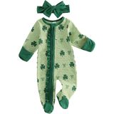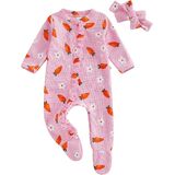 Baby Girl Valentine's Day Outfits Long Sleeve Heart Bow Print Ruffle Jumpsuit with Headband Set Newborn Clothes