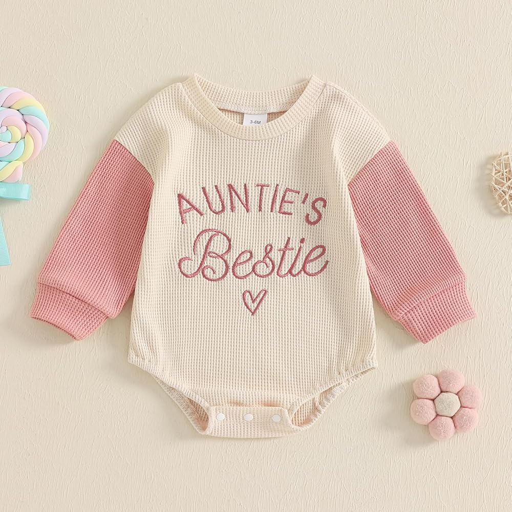 Infant Baby Girl Sweatshirt Romper Long Sleeve Crew Neck Letter Embroidery Waffle Bodysuit Little Girl Fall Outfit