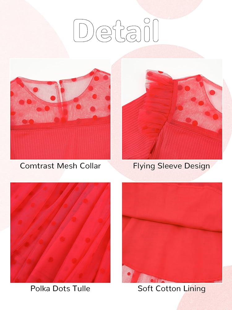 Unique Design:Baby girl tutu dress adopts flying sleeves, A-line, 3 layers of polka dot tulle for more elegance,and tulle on the top of the chest instead of solid fabric, which increases the breathability of the dress while ensuring beauty.
