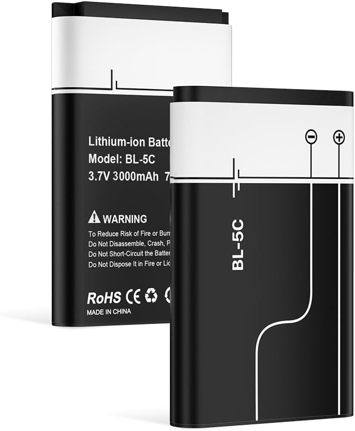 JDIRLDL BL-5C 3000mAh Battery for 1000/1010/1100/1108/1110/1111/1112/1116/2730/2600/2700/E50/E60 BL-5C - 2 Packs