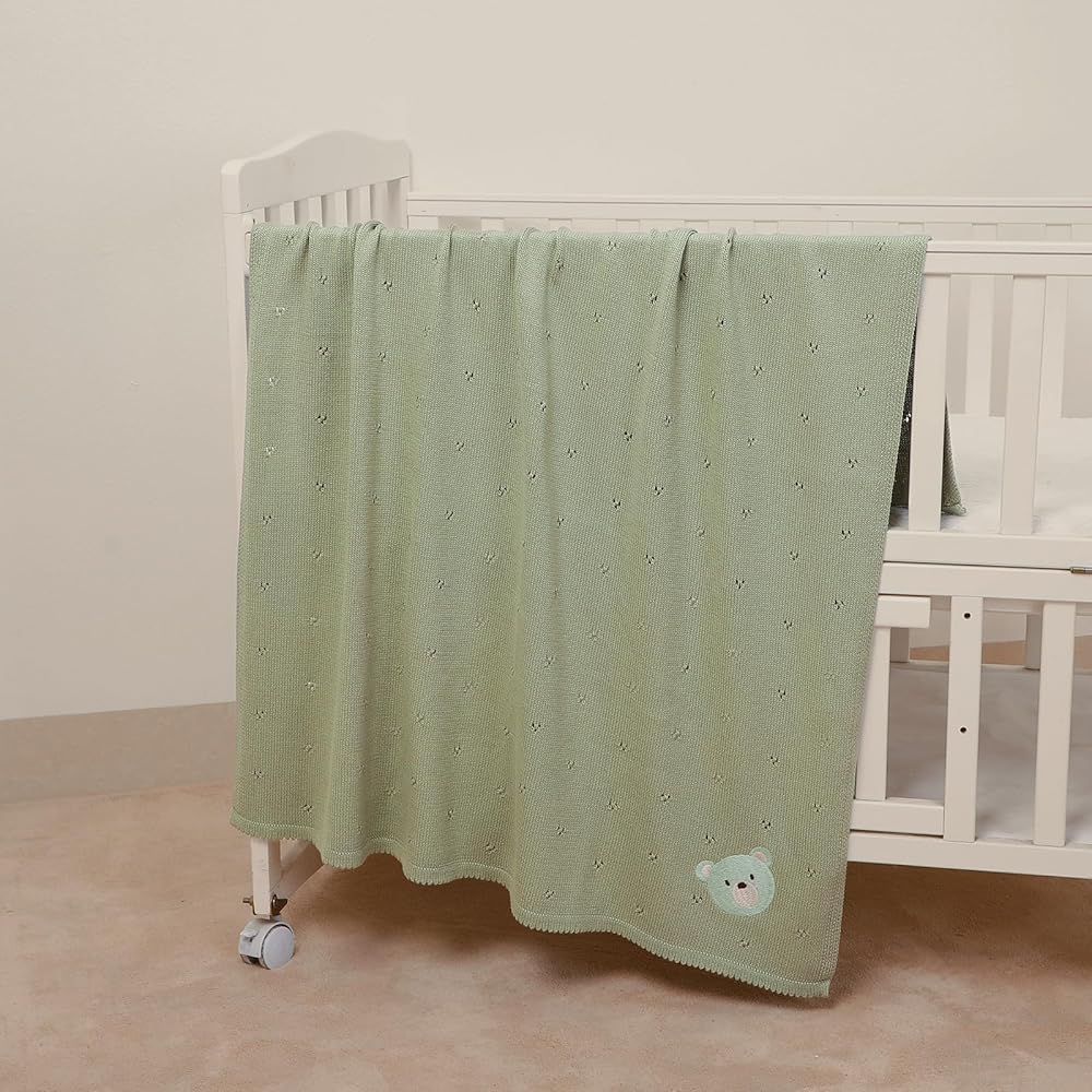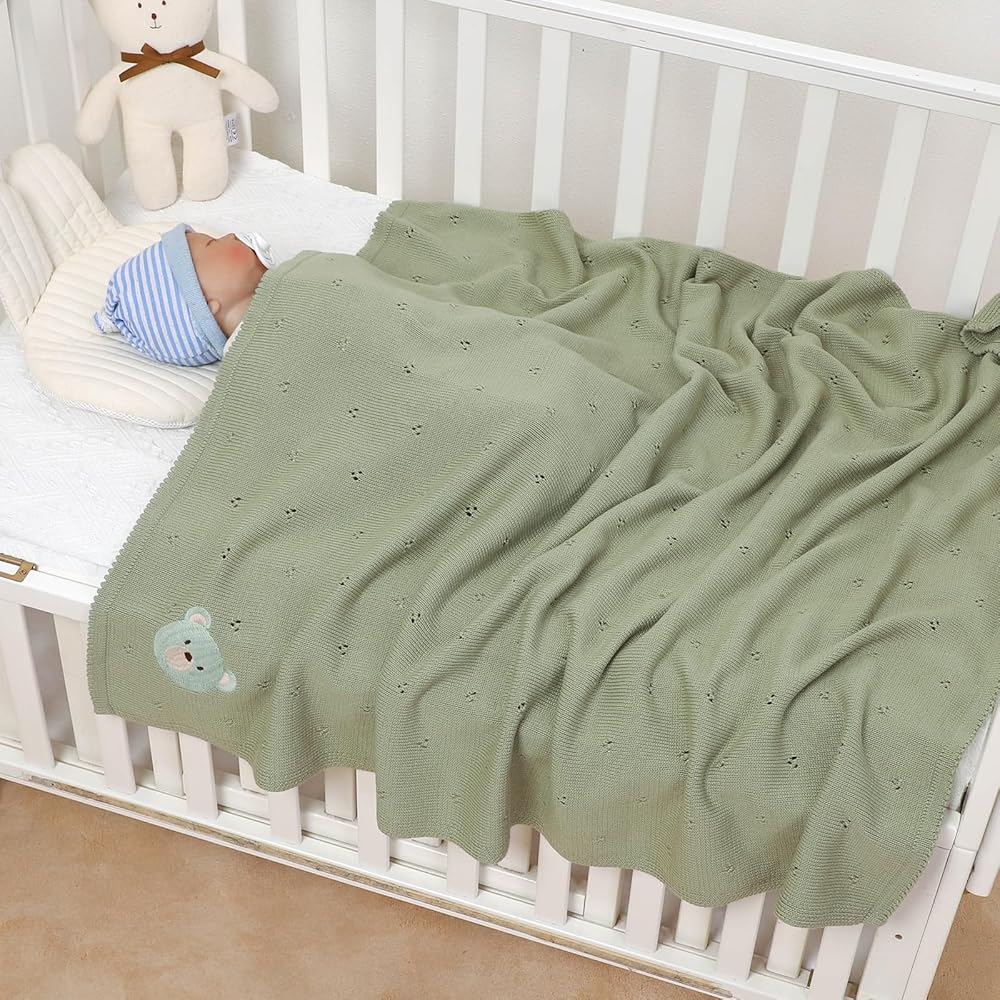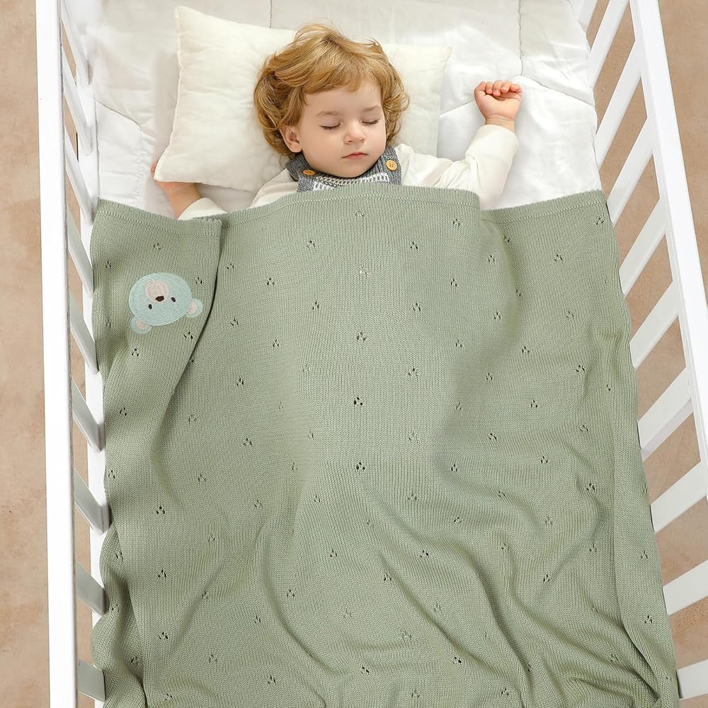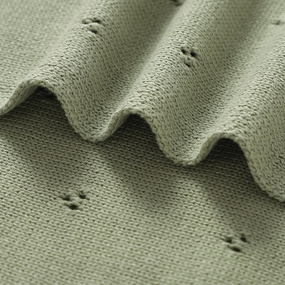 Style:baby blanket that feels soft and high quality. It is tightly woven and has a bit of weight to it, while still remaining flowy with a nice drape and the periodic holes ,just in case of suffocation risk.