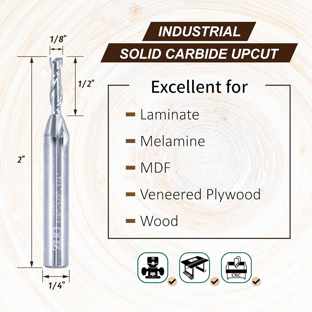 SPIRAL UPCUT DESIGN: Optimized for smooth and efficient routing on all types of wood materials.
