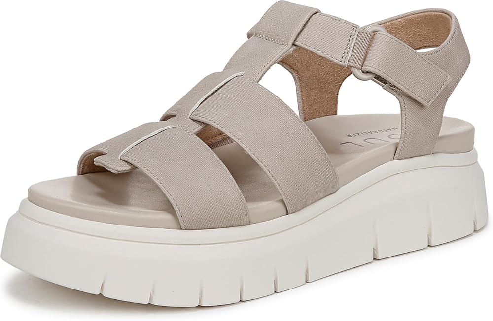 Sandals from SOUL Naturalizer // Sun. Sand. Sea. A lug sole adds utilitarian flare to your classic fisherman sandal. Flexible platform sandal with a sporty sole. Synthetic upper with recycled linings and an open toe. Adjustable hook-and-loop closure. ContourFIT technology: sculpted insole, soft foam lining, arch support with memory foam, lightweight and flexible outsole. 1 1/4 inch platform, 1 1/2 inch heel. Consciously packaged: 100% of our shoe boxes are made of 80% recycled paper + soy-based ink. Designed using some environmentally preferred materials. WHY YOU'LL LOVE IT: Forever elegant silhouettes with all day wearability, available in an inclusive range of sizes and widths. Designed to the contours of a woman's foot. The Beautiful Fit. Since 1927.