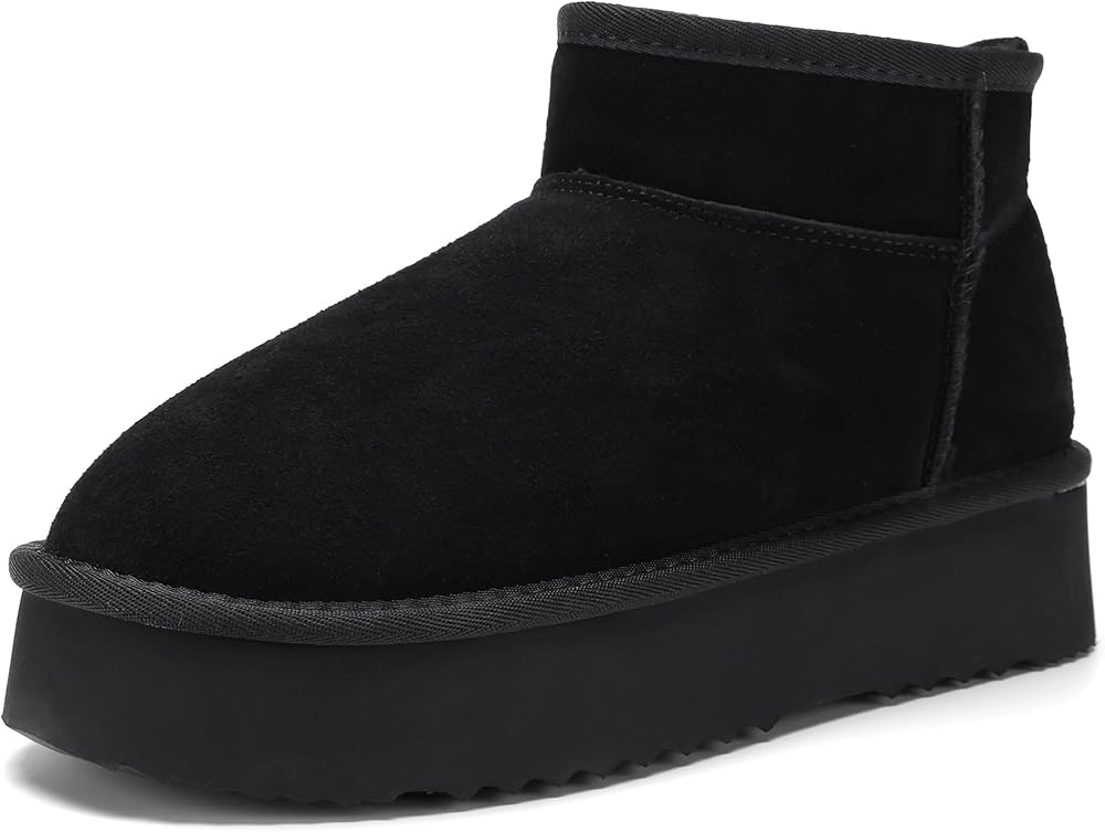 AOSIFU Platform Mini Boots for Women, Genuine Suede Leather Classic Winter Ankle Snow Shoes with Comfortable Memory Foam Insole Water Resistant Lightweight Anti-Slip Outsole Outdoor Indoor