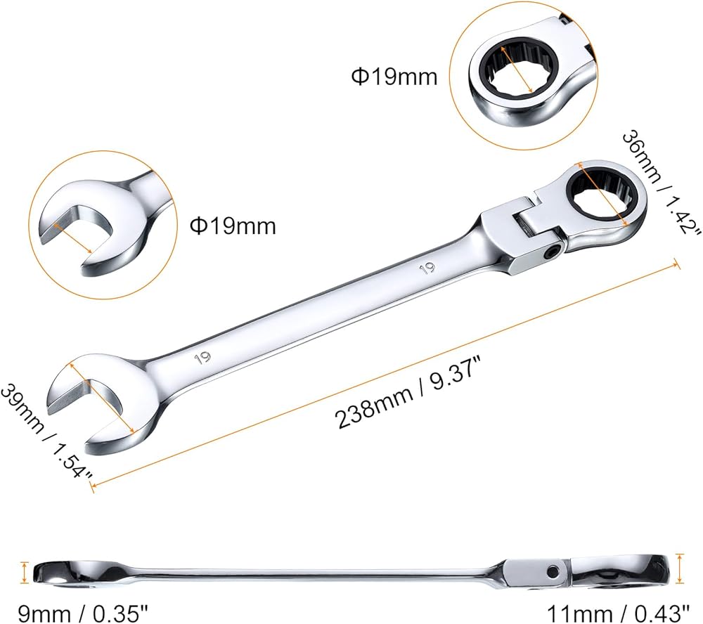 Feature - 180° flex head of metric ratchet combination wrench can reach the most difficult-to-reach fasteners, and can achieve maximum flexibility and ease of use in a small space. Its anti-slip tooth design provides a firm grip, fits tightly to the fasteners, prevents sliding.