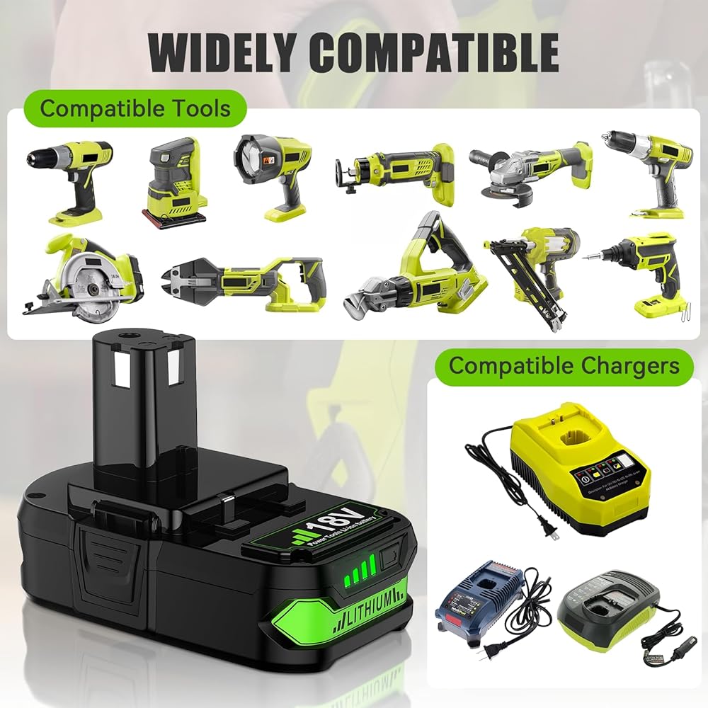 🔋 【Widely Compatibility】Fit for Ryobi 18V ONE+ Plus Battery P102, P103, P104, P105, P107, P108, P109, P189,P190, P197, P122, P191, compatible with all 18v one+ system cordless tools and P117 P118 original charger. Such as routers, string trimmer, reciprocating saws, circular saws, blowers, etc.