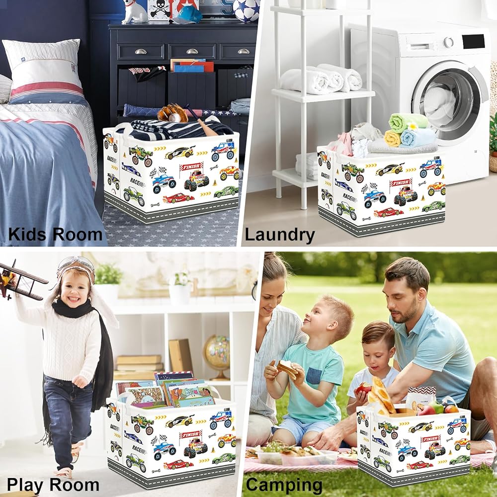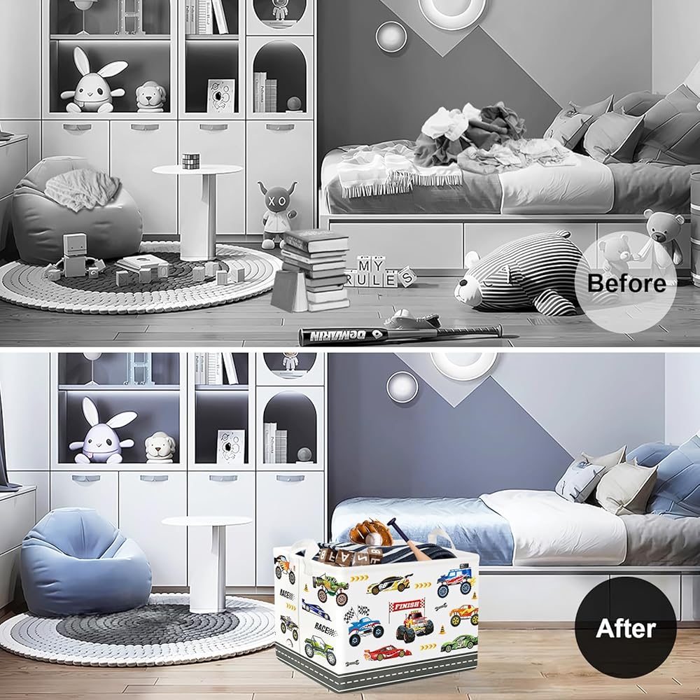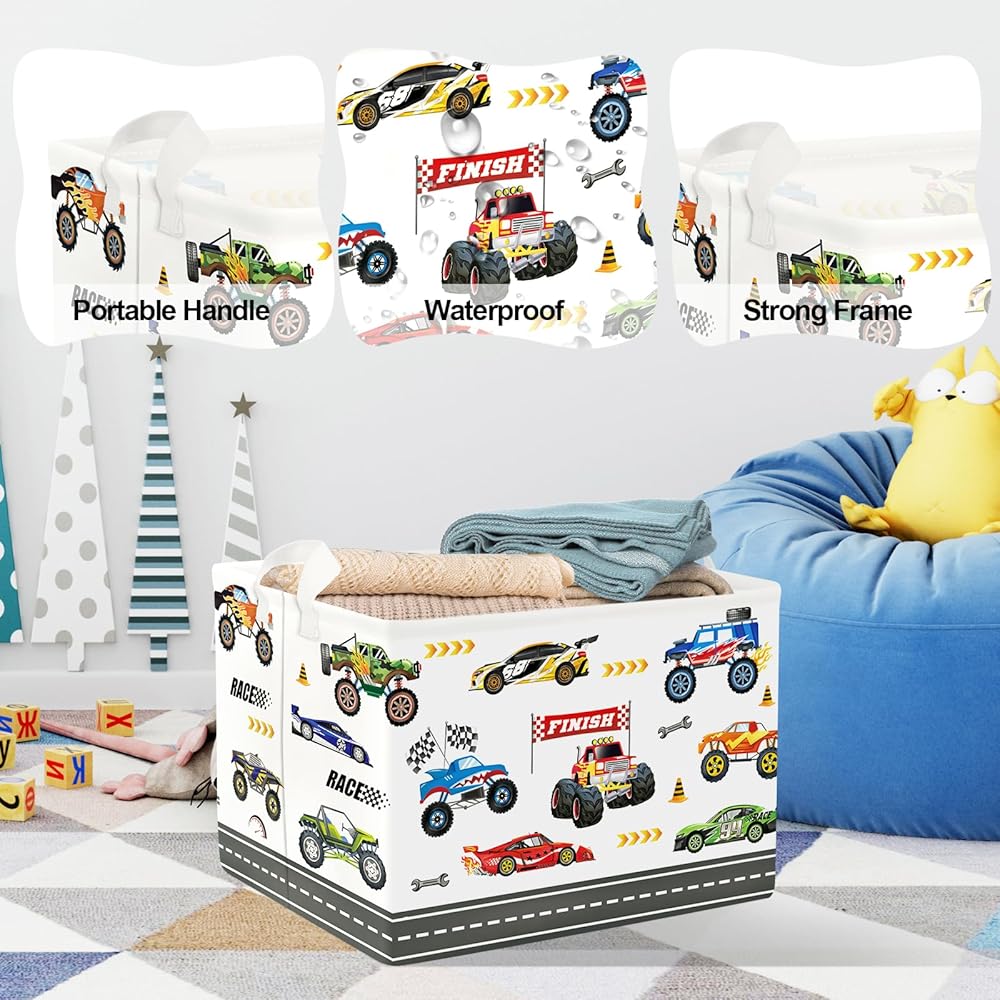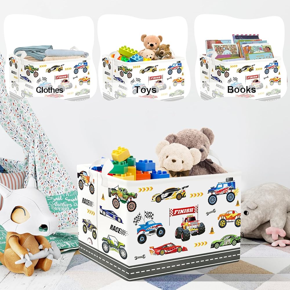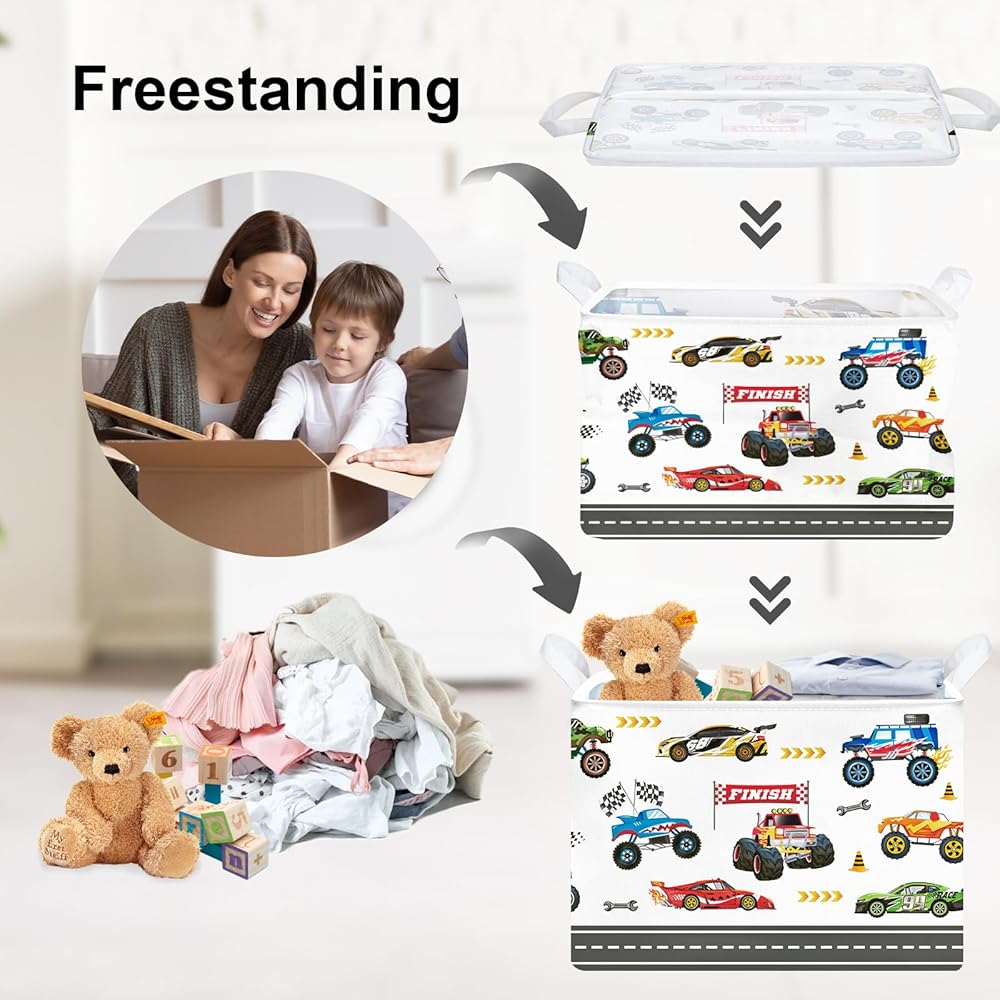 City Car Nursery Hamper - Different vehicles weaving in and out of the city buildings, the comforting white and blue color scheme, it gives you a great life atmosphere, encourage your kid to put their favorite toys in the basket
