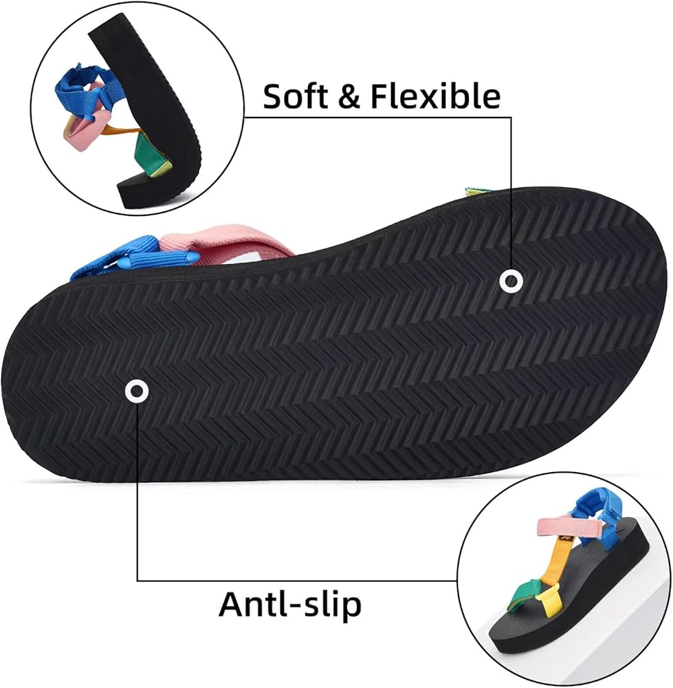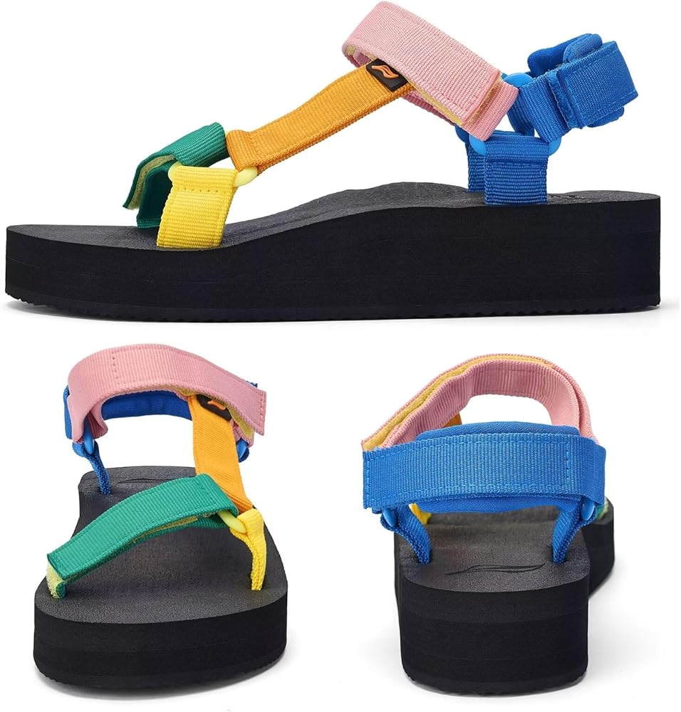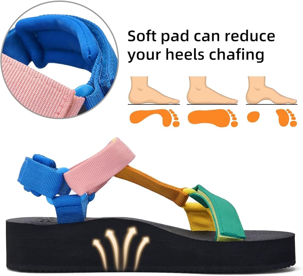 SOFT & ARCH SUPPORT: These women's platform sports sandals have a 1.57-inch thick EVA midsole that provides strong cushioning, allowing you to walk and stand for long periods of time without fatigue.