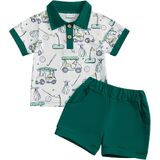 2Pcs Toddler Baby Boys Golf Outfit Short Sleeve Golf Cart Print Polo T-shirt Elastic Shorts Infant Summer Shorts Set