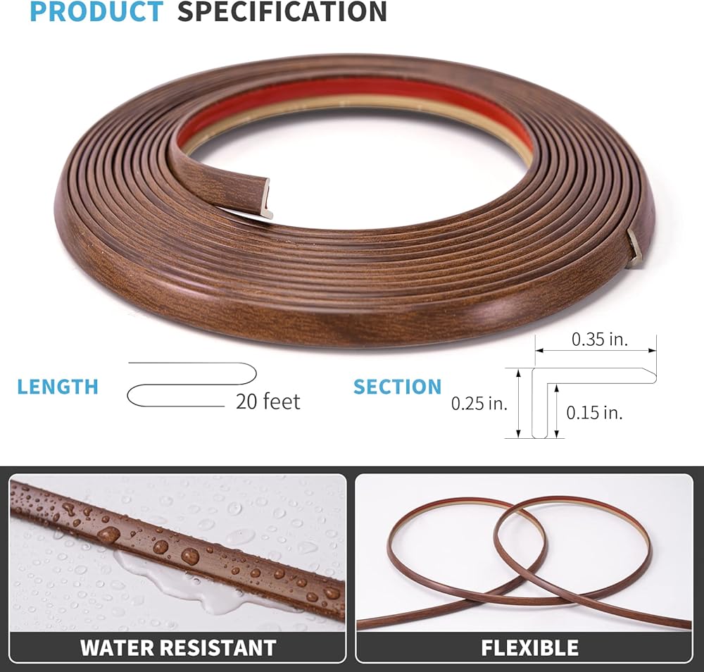 Art3d 20ft Outside Vinyl Corner Trim Peel and Stick for Tile and Wall Edges, Furniture Decoration, Cherry