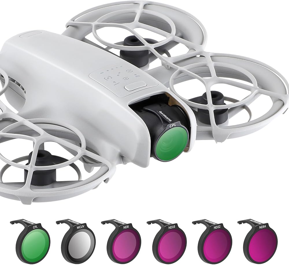 Versatile Filter Set for DJI NEO Drone: Choose between a 3-Pack (ND8, ND16, CPL) or a 6-Pack (ND8, ND16, ND32, ND64, CPL, MCUV) for professional-grade drone photography and videography. Whether you're shooting in bright sunlight, low light, or challenging environments, these filters enhance the quality of your shots by reducing glare and controlling light exposure.