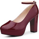 [ FEATURES ]: Patent Leather Chunky Heels; Ankle Strap; Platform High Heels Mary Jane Pumps Shoes
