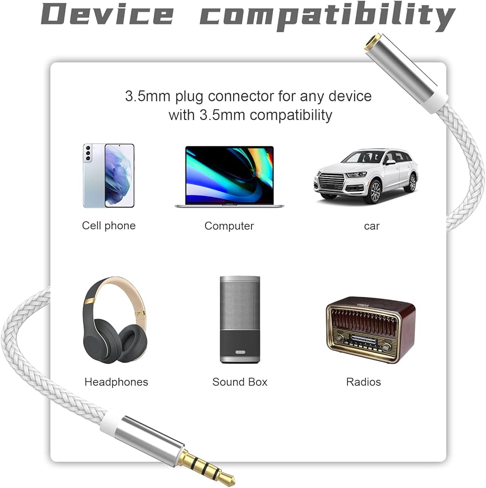 Male to Female 3.5mm Audio Cable stereo jack adopts double-layer advanced shielding material, no current generation, no noise, wire external use of nylon braid, the 3.5mm auxiliary cable passes 10000+ bend tests and can withstand twist, tug and tangle, durable, not easy to break.