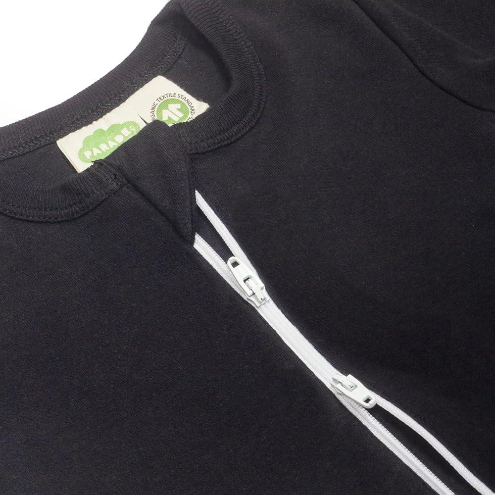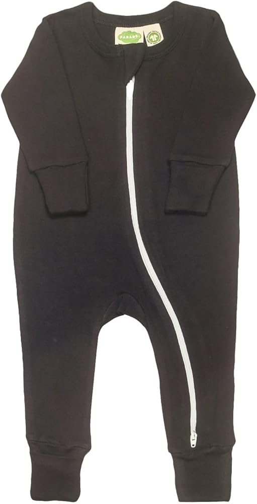 Parade's organic cotton '2-way' zipper rompers are designed for ultimate comfort and easier changes. Dress from the top, and change from the bottom - all without exposing baby's tummy or pulling over the head. Plus our convertible fold-over cuffs helps to keep little hands and feet warm and cozy.
