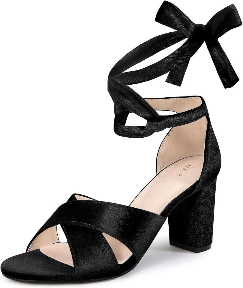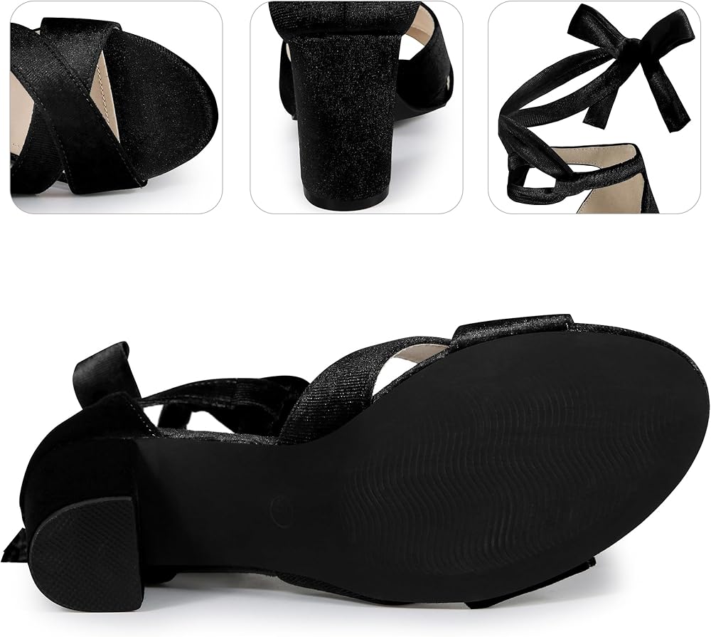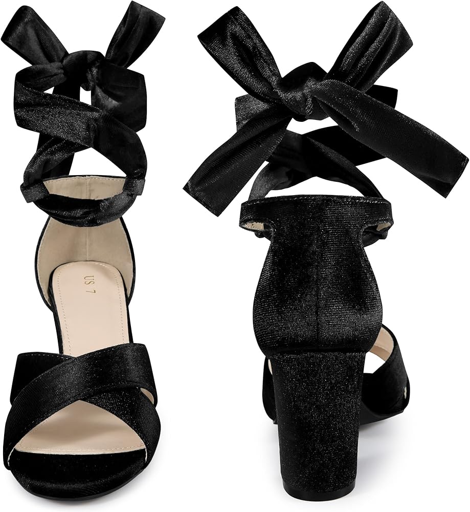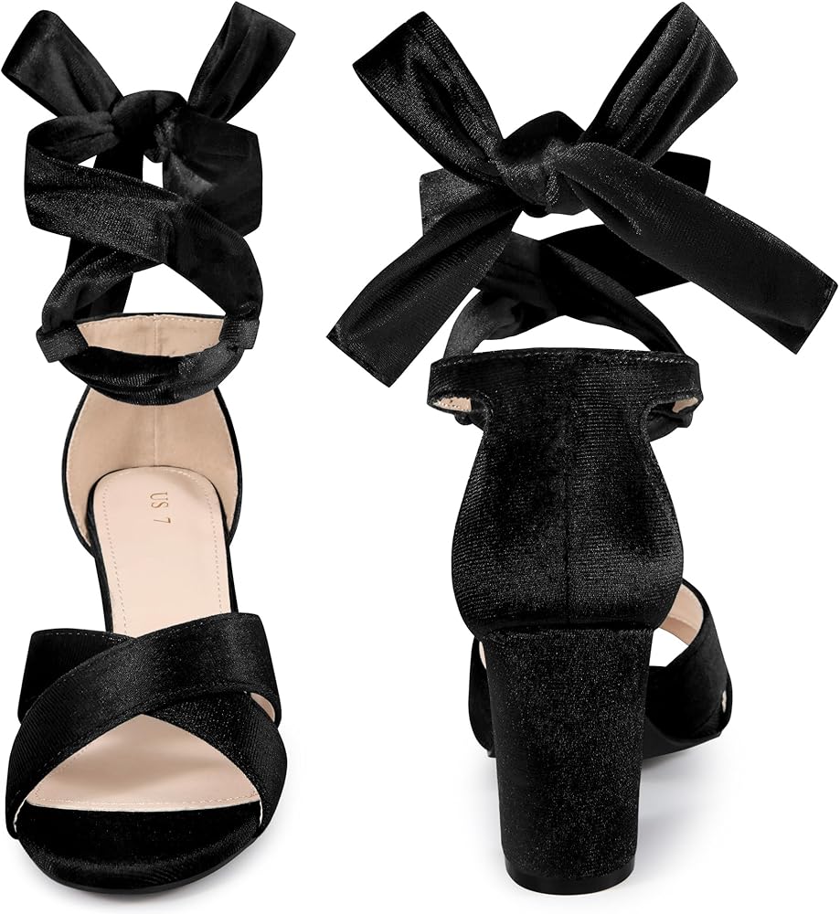 A must-have in every girl's closet! These chunky heel available in black and green color, feature in crisscross top strap and lace up that make you look elegant, great design with velvet material looks retro. It will be the most eye-catching fashion item at the cocktail party.