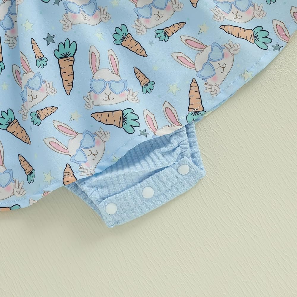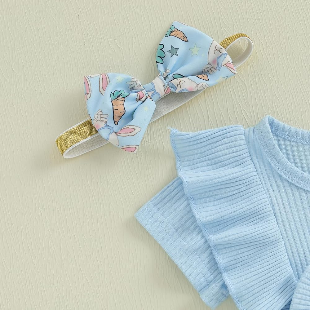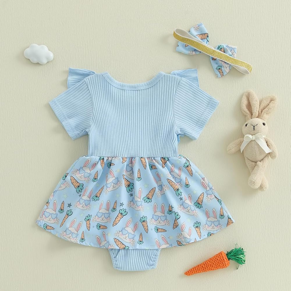 Baby Girls Rompers Dress Easter Clothes Easter Eggs/Carrot Print Skirt Hem Infant Bodysuits Jumpsuits with Headband