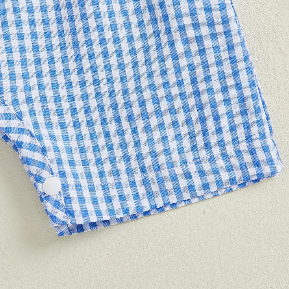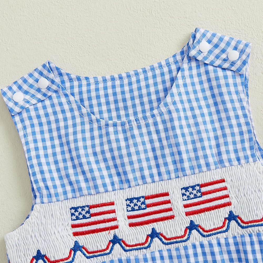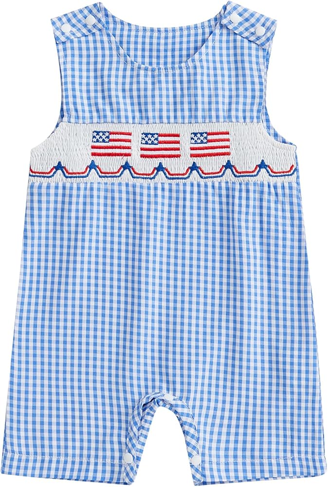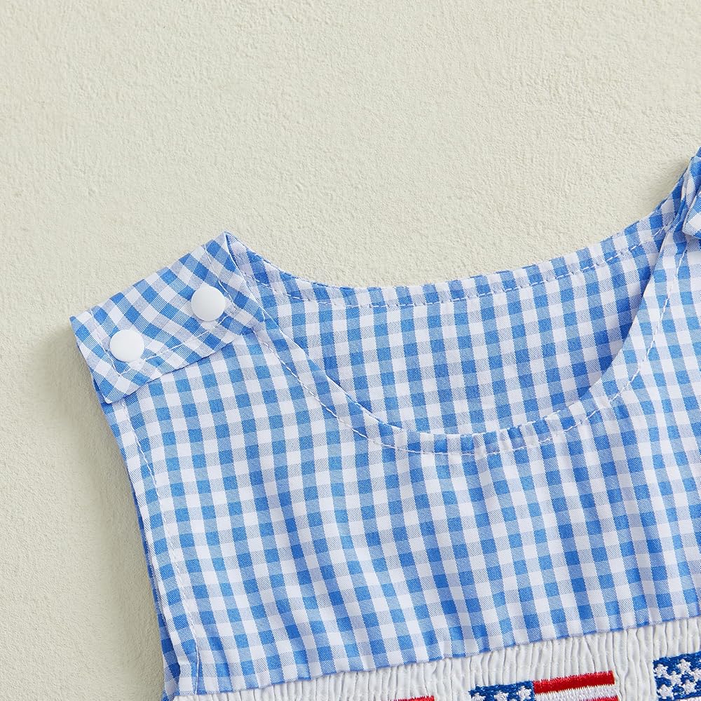 Baby Summer Rompers Soft Plaid Pattern Baseball Embroidery Smocked Crew Neck Sleeveless Newborn Jumpsuit