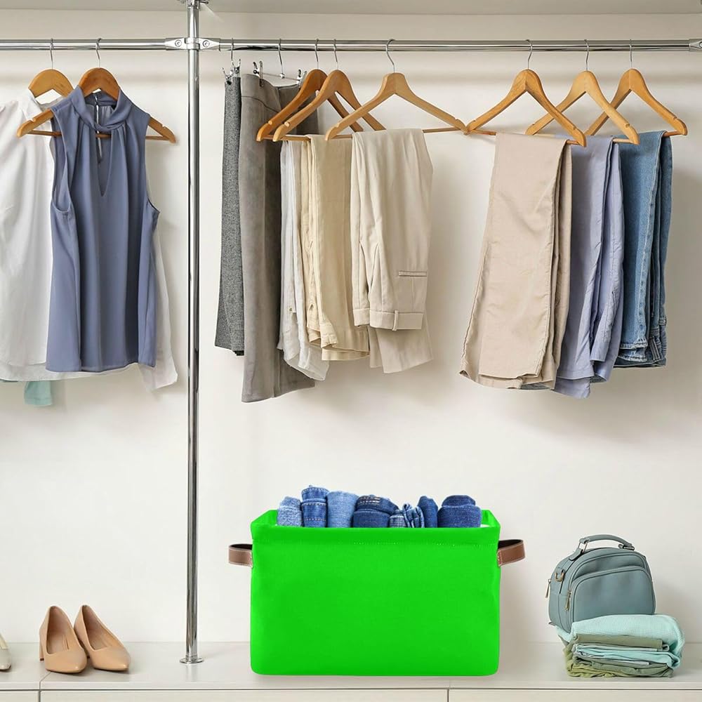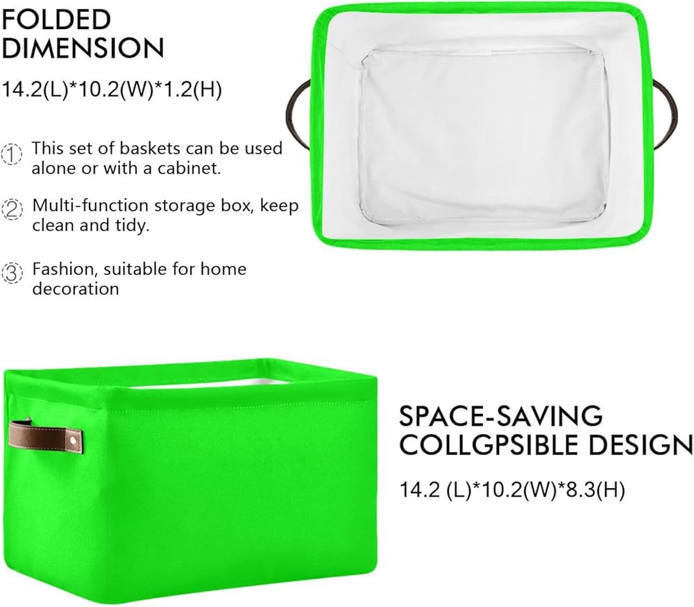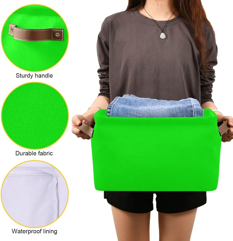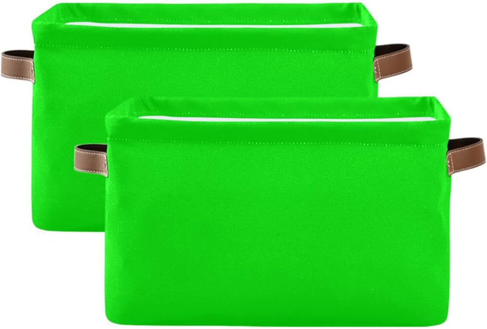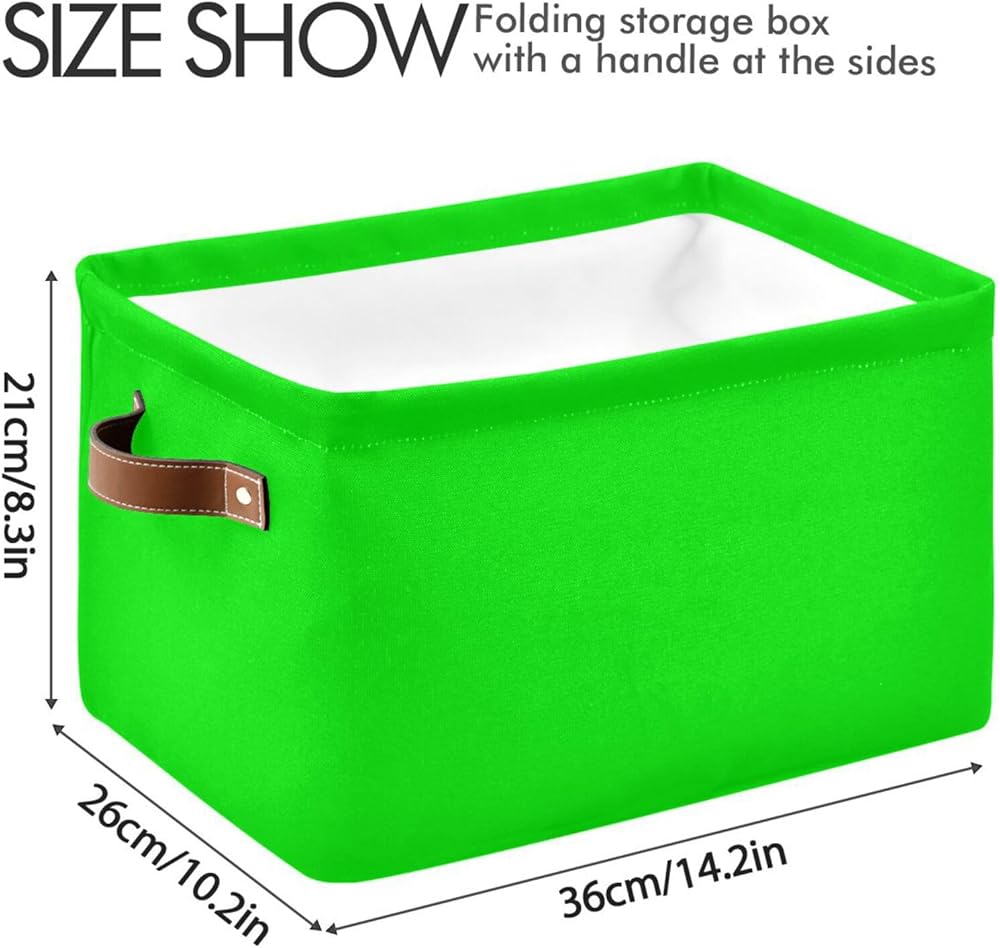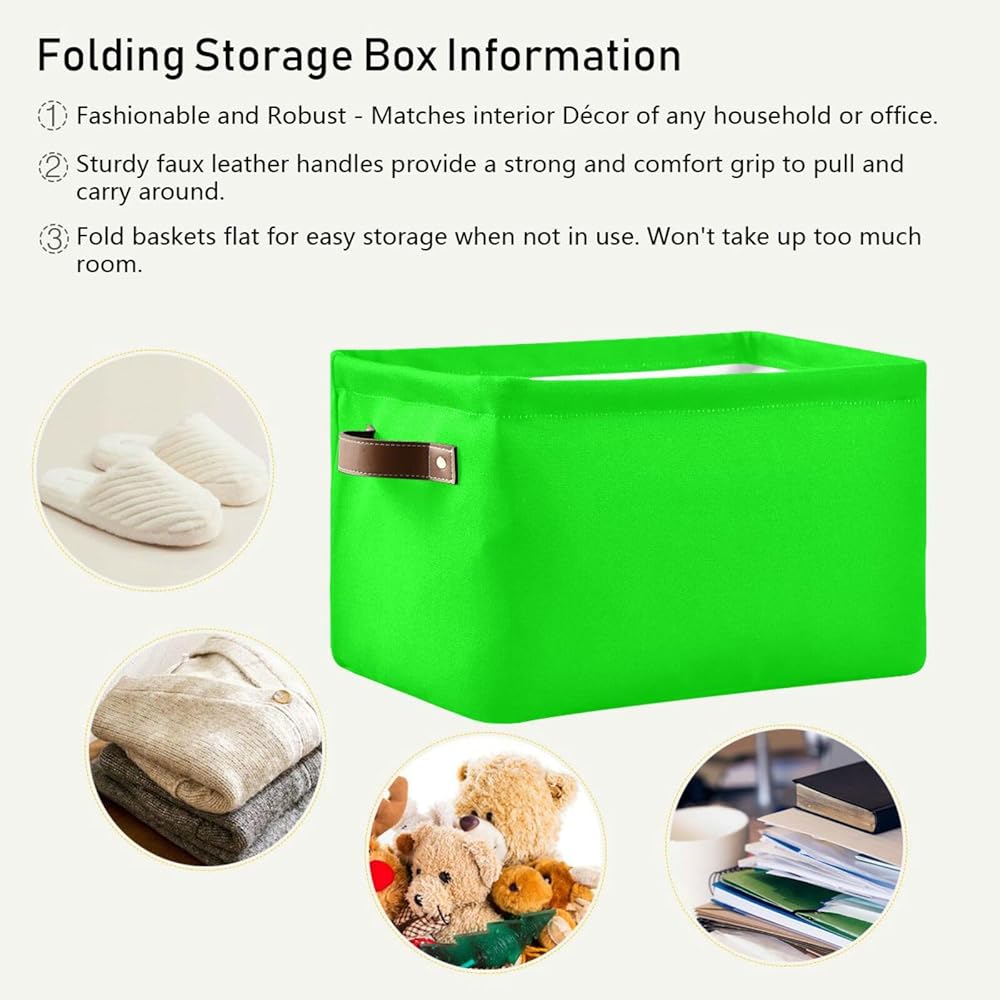 Dussdil Storage Basket Neon Lime Green Fabric Storage Organizer Box Bin for Shelf Closet Nursery Laundry, Large Collapsible Cube Baskets with Handles 2 Pack
