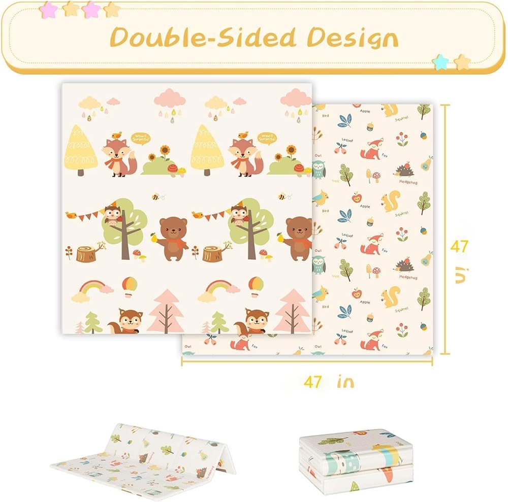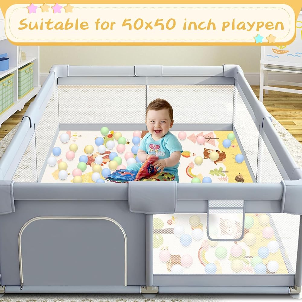Baby Play Mat 47 x 47 Inch Baby Playpen Mat, Foldable Baby Foam Mat, Reversible Baby Floor Mat for Infants & Toddlers, Portable Waterproof Activity PlayMats for Playpen.