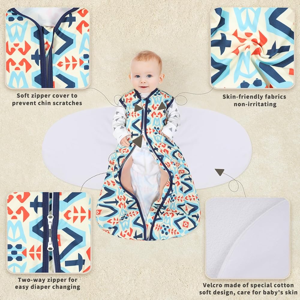 Our swaddle wings are made of soft linkable new cotton fabric instead of the sharp velcro design of other products,Safer and more comfortable.The TOG rating is 0.5, and closing the wings TOG can be upgraded to TOG 1.0, providing proper comfort for mild seasons or climates.