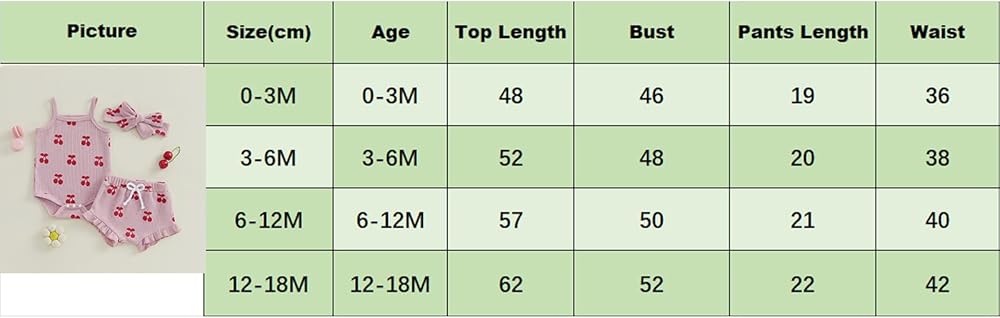 Feature: Infant girl outfits, newborn girls outfits spring summer baby girls clothes, spaghetti strap sleeveless cherry printed romper cami tank top, elastic shorts pants set with headband, can be newborn clothes for baby girl set, infant baby girl outfit
