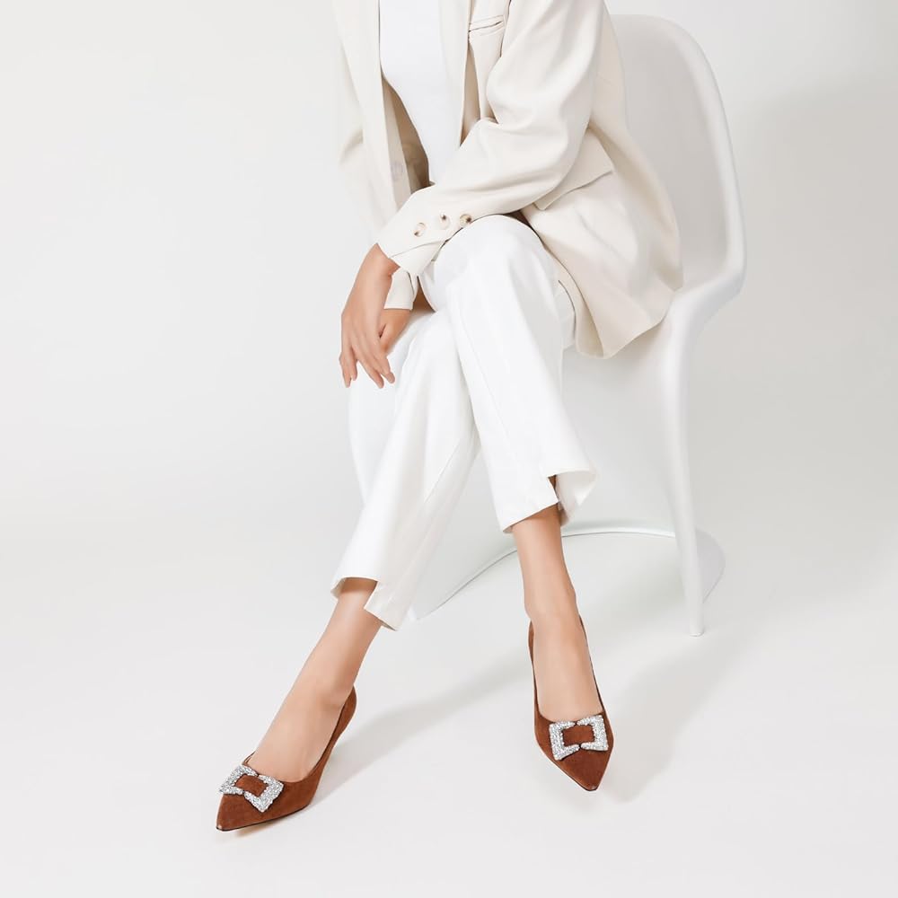 𝐋𝐮𝐱𝐮𝐫𝐢𝐨𝐮𝐬 𝐄𝐥𝐞𝐠𝐚𝐧𝐜𝐞: Elevate your wardrobe with our exquisite pointed-toe high heels, adorned with rhinestones metal buckles that add a touch of luxury and sophistication.