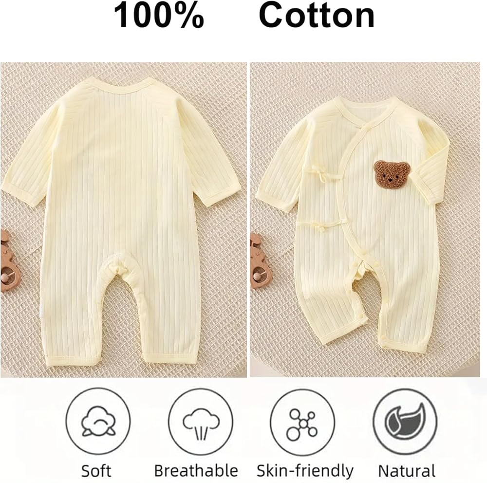 Baby onesie, suitable for newborns aged 0-6 months. 100% cotton material, soft, comfortable and breathable.