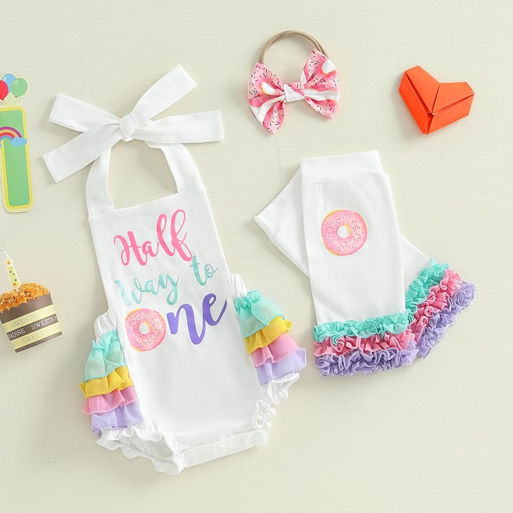 Baby Girl Half Birthday Outfit Sweet 6 months 1/2 Birthday Romper Bodysuit Leg Warmers Headband Set