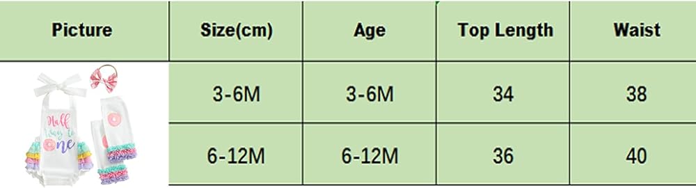 3-6M Length: 12.99 Waist: 14.96 Advised Age: 3-6 Months