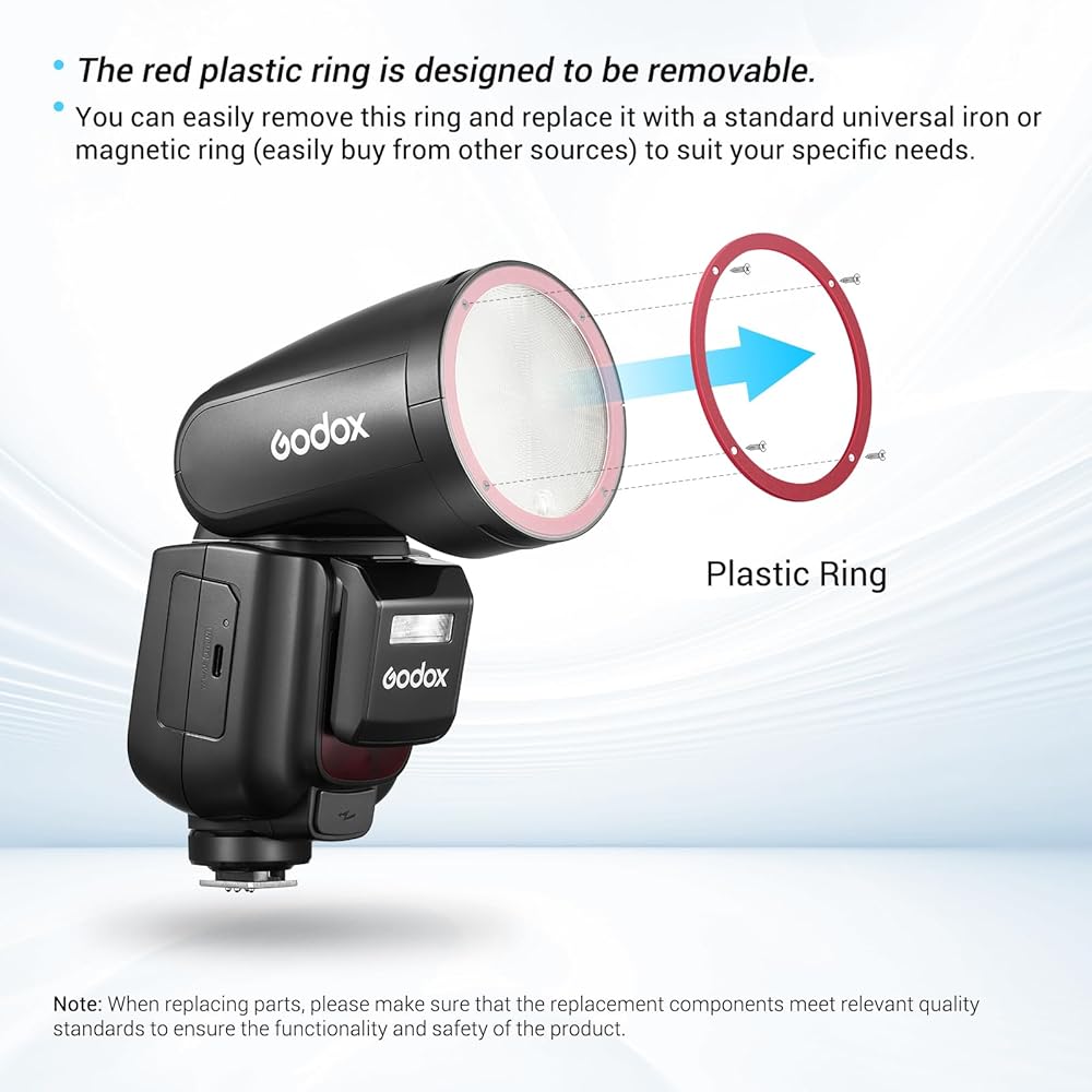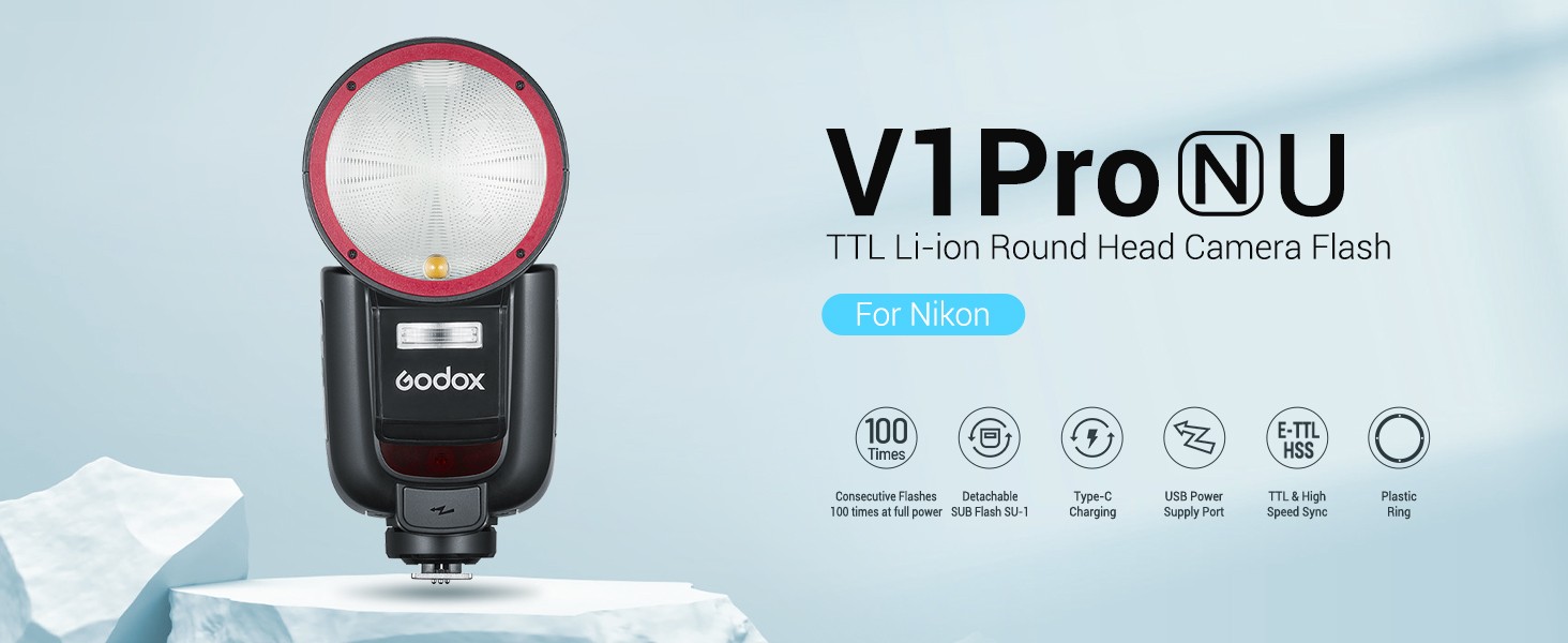Up to 100 times Full-power Continuous Flashing: Godox V1Pro-NU has made a technological breakthrough, which has increased the continuous flashing times of full power to 100 times, giving more possibilities for creation, allowing you to give full play to your creativity and capture every exciting moment