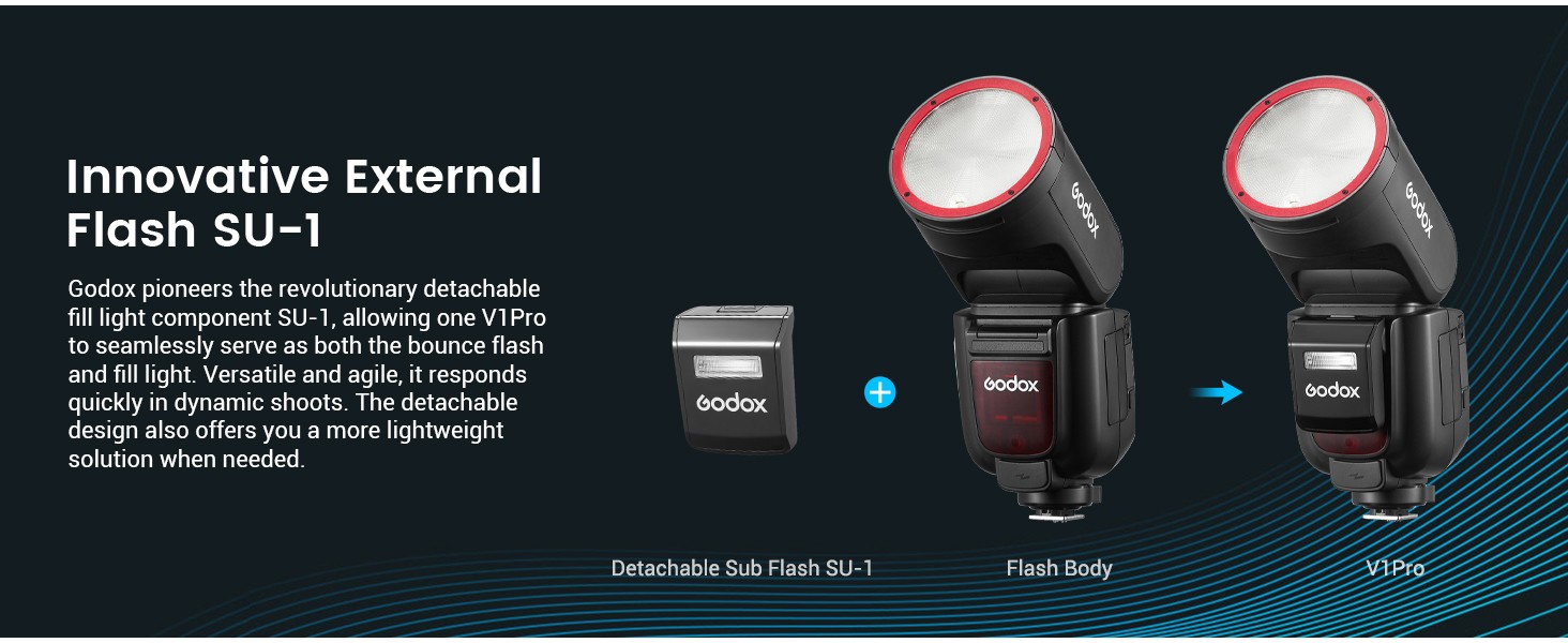 Detachable Sub Flash SU-1: The V1Pro-NU is creatively designed with a detachable secondary flash SU-1, which is compact and easy to install. With 22 adjustable flash powers in total, it effectively enhances the fill-in effect for portrait shooting and other scenes