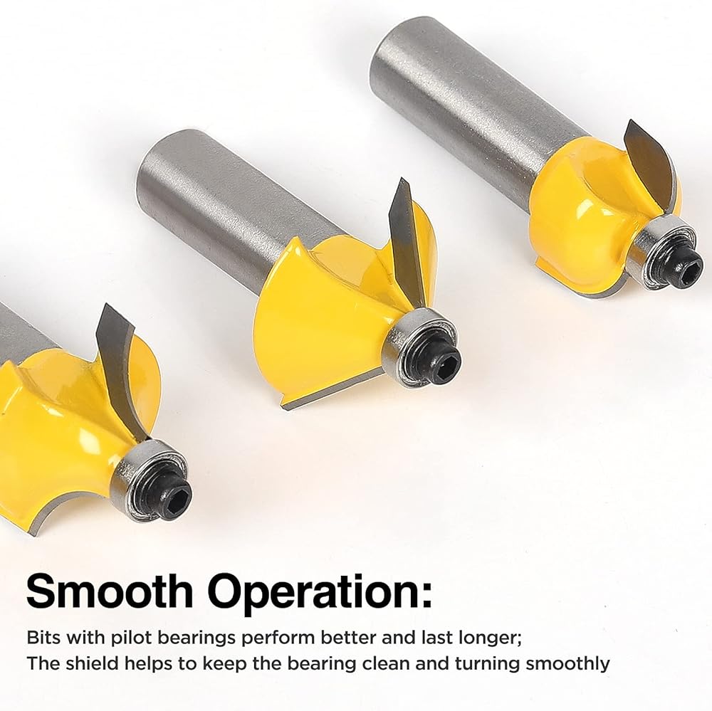 TOODLD router bit sets 12 Pieces 1/2 inch shank is the first router bits exquisite package for beginners.Universal 1/2 inch shank fits all models of routers,(either handheld or benchtop router table) such as TOOLDO, KOWOOD, Bosch, DeWalt, Makita,Milwaukee, MNA,Porter & Cable, Skil, Ryobi, Black & Decker