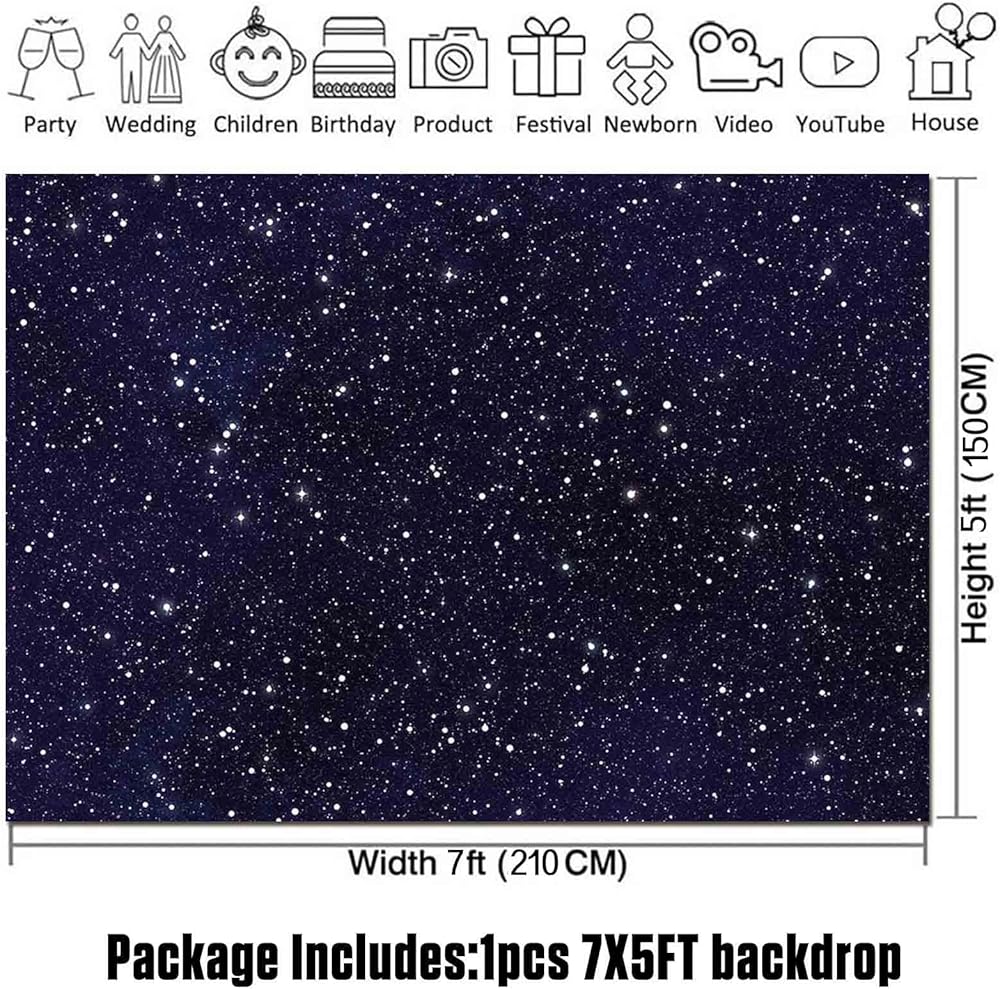 7x5FT Soft Fabric/Polyester Night Sky Star Universe Space Starry Photography Backdrops Kids Boy or Girl Birthday Party Decor Photo Background Cake Table Banner