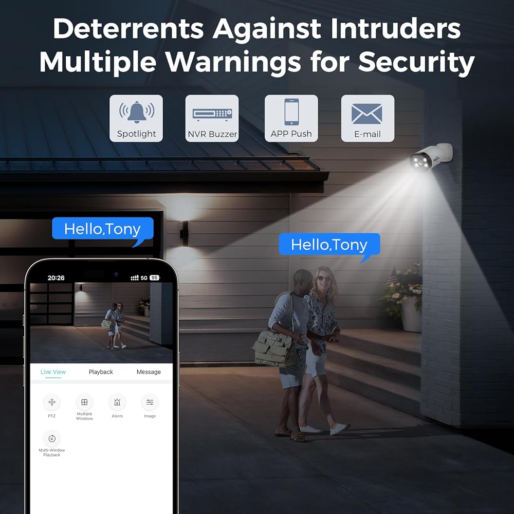 【Clear Night Vision up to 100ft】 Equipped with infrared LED lights, the Full HD 8MP security camera ensures sharp and crisp images in the night with the camera's automatic IR-CUT filter, and the night vision can be up to 100ft