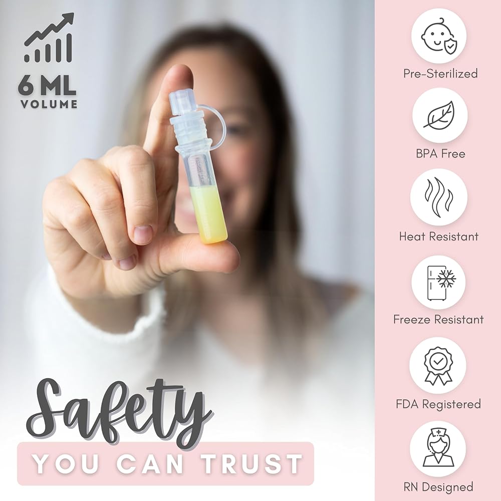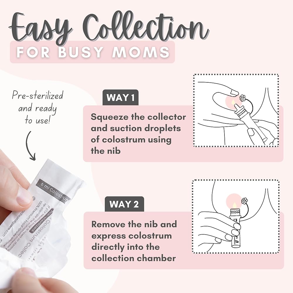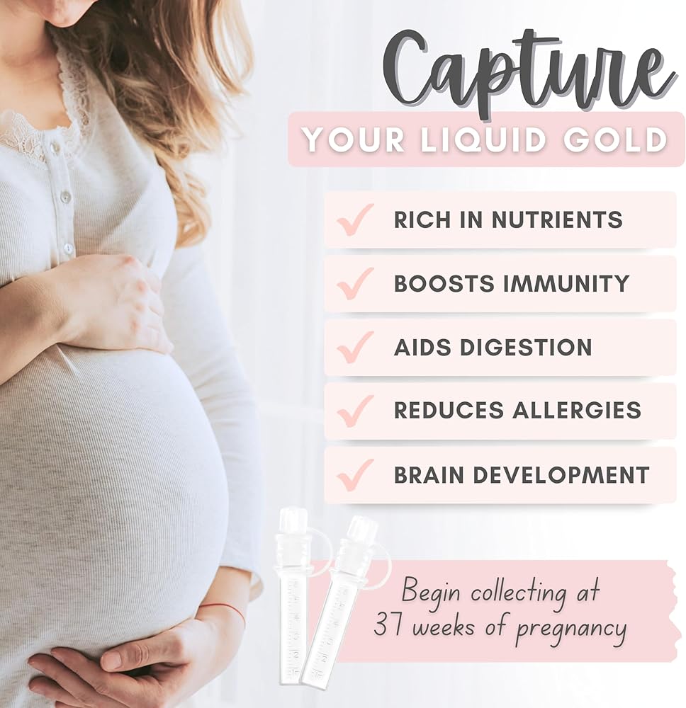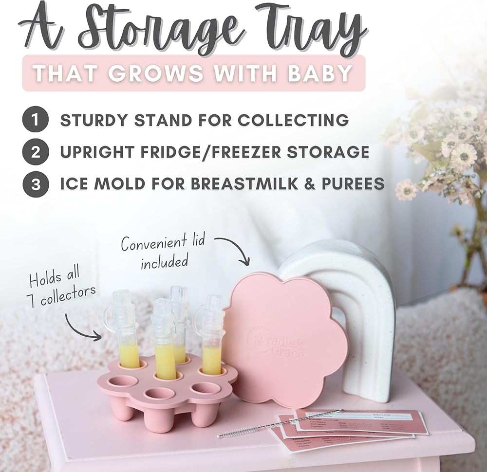 Get ready for your breastfeeding journey with our Silicone Colostrum Collector Kit! This kit includes seven pre-sterilized 6ml collectors, designed for gathering colostrum—the first milk your body produces and often referred to as "liquid gold", packed with essential nutrients to support your baby's early health. Our versatile 3-in-1 storage tray, made from premium food-grade silicone, is both safe and functional! It acts as a sturdy stand to catch every drop during collection, an upright storage solution for your fridge or freezer, and easily converts into an ice cube mold for freezing breast milk or purees for your little one. Cleaning is simple, allowing you to focus on what truly matters: bonding with your baby! Just disassemble the collectors, wash them in warm, soapy water, and sterilize by steaming or boiling for 2-3 minutes before your next use. Crafted by a pediatric RN and fellow mom, these colostrum collection kits are FDA registered, ensuring it meets safety standards. With more collectors and larger volumes than competitors, plus a bonus Breastmilk Storage Guidelines download, you're equipped with everything you need for a successful breastfeeding experience!