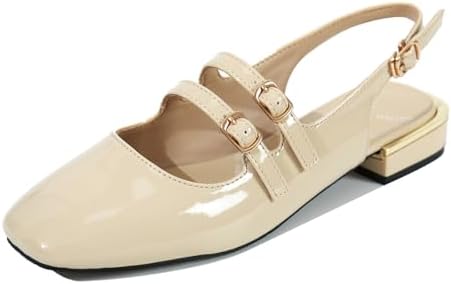 Women's Patent Leather Low Block Heel Mary Jane Sandals with Adjustable Ankle Straps Closed Square Toe Slingback Chunky Heel Pumps for Daily Work Prom Evening Dating