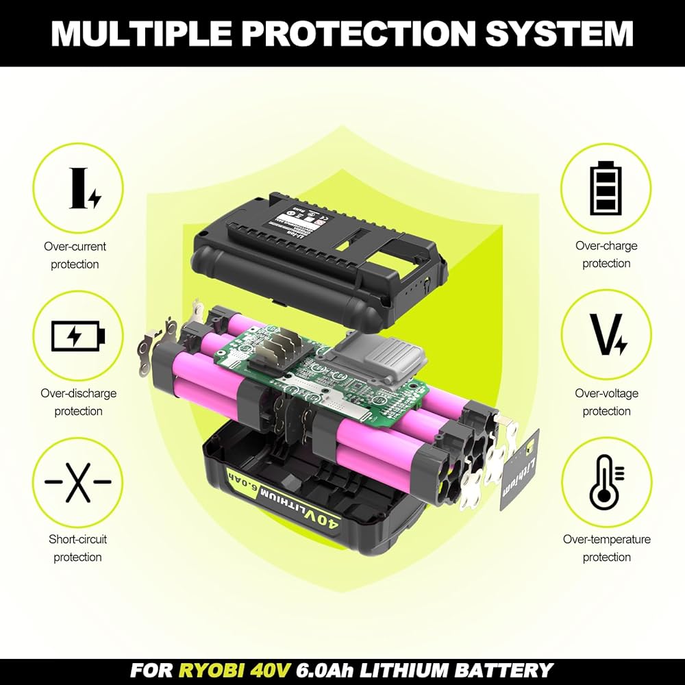 Safety & Stability: Koedsion 40-volt Battery Using the Batteries Management System to Avoid over-Charge,over-Discharge,over-Current,over-Voltage, Short Circuit and over-Temperature, will not Cause Damage to the Power Tool and Charger. Replace for Ryobi 40v Batteries no Memory effect